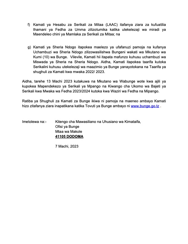 Home » TAARIFA KWA UMMA KUHUSU KUANZA KWA VIKAO VYA KAMATI ZA BUNGE