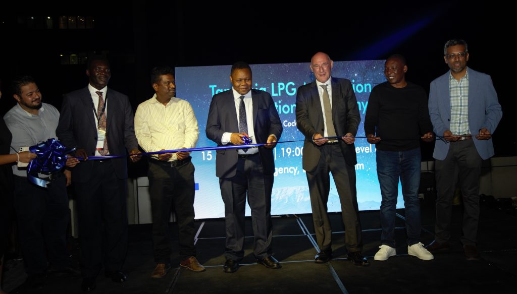 Katibu Mkuu Wizara ya Nishati, Mhandisi Felchesmi Mramba akikata utepe kuashiria uzinduzi wa Umoja wa Wafanyabiashara wa Gesi za Mitungi ya Majumbani nchini (TZLPGA) uliofanyika Machi 15, 2023 jijini Dar es Salaam.