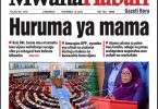 Rais wa Jamhuri ya Muungano wa Tanzania Mhe. Dkt. Samia Suluhu Hassan akiongea na Naibu Katibu Mkuu wa Ofisi ya Waziri Mkuu (Kazi, Vijana, Ajira na Wenye Ulemavu), Zuhura Yunus, jijini Mwanza leo Oktoba 14,2024 kwenye maadhimisho ya kilele cha mbio za Mwenge wa Uhuru. Katikati ni Naibu Waziri Ofisi ya Waziri Mkuu) Kazi,Vijana, Ajira na Watu Wenye Ulemavu), Patrobas Katambi.