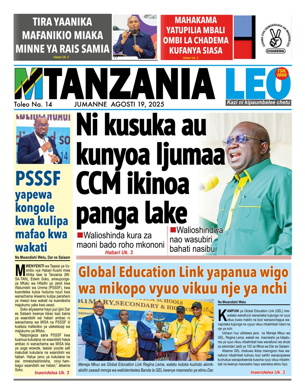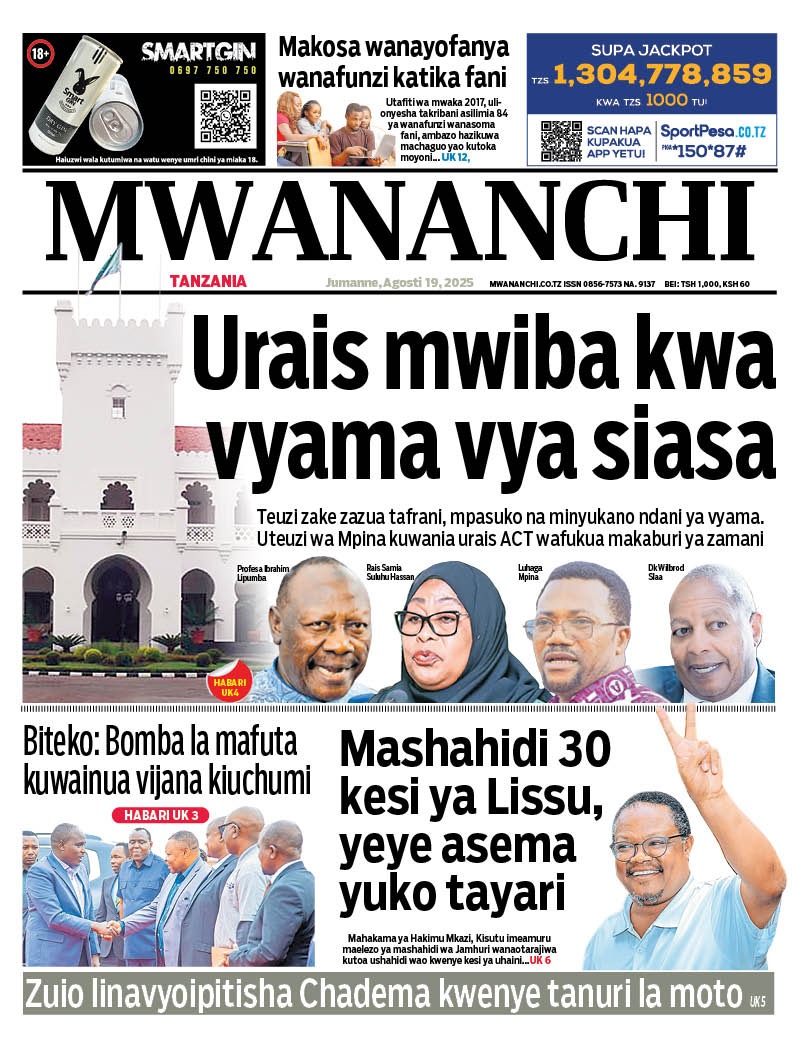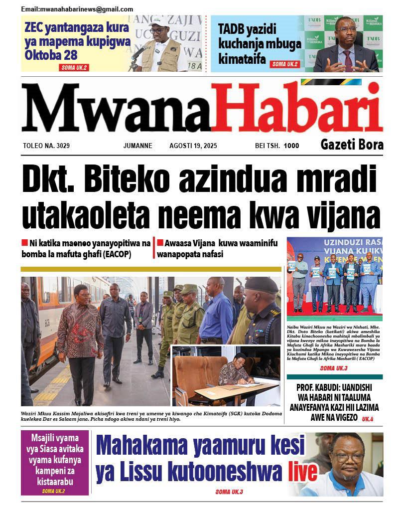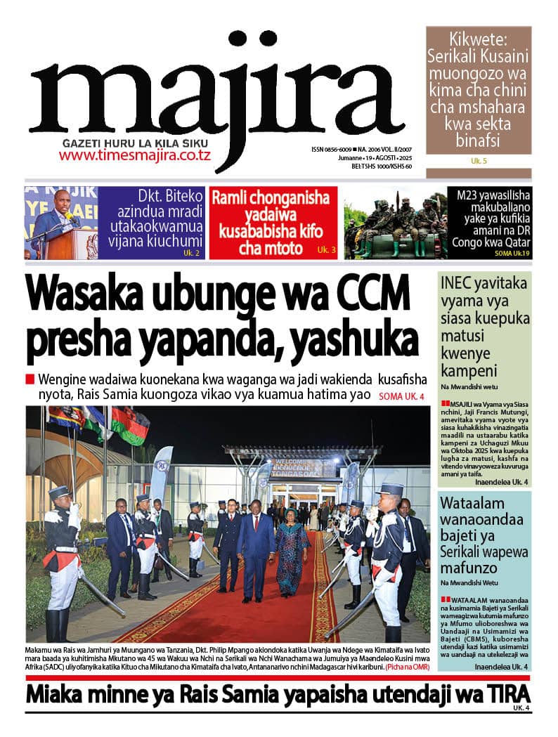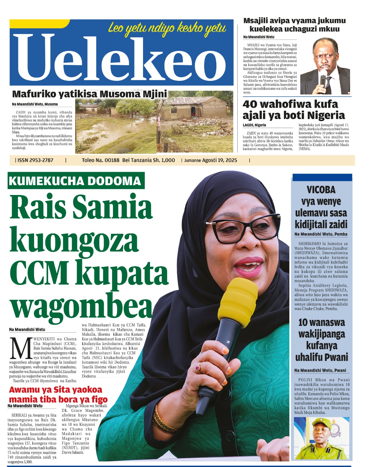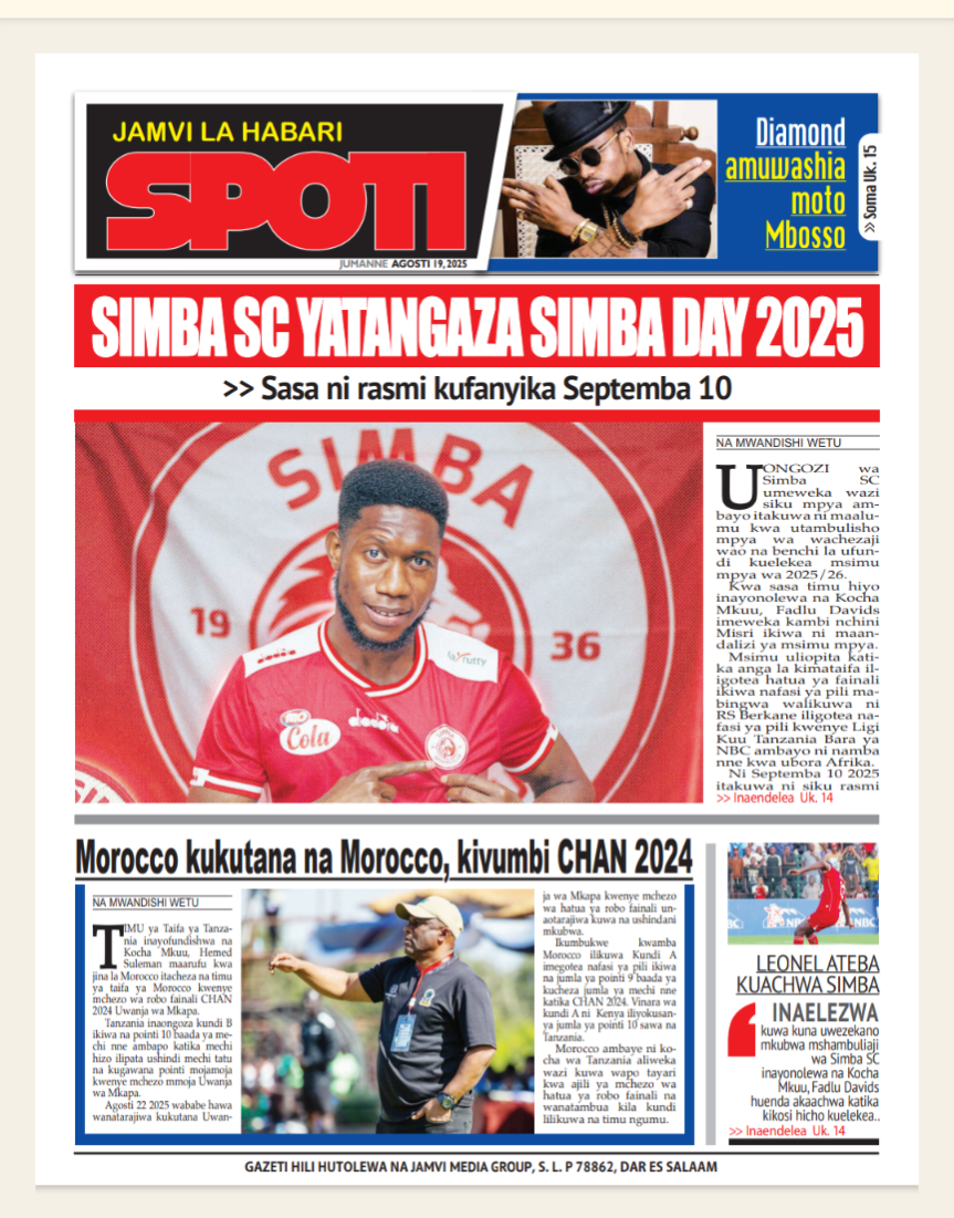 Featured • Magazeti PATA HABARI MOTO MOTO KATIKA MAGAZETI YA LEO AGOSTI 19,2025 1 month agoby Alex Sonna1,791 Views Written by Alex Sonna FacebookXGoogle+PinterestLinkedIn