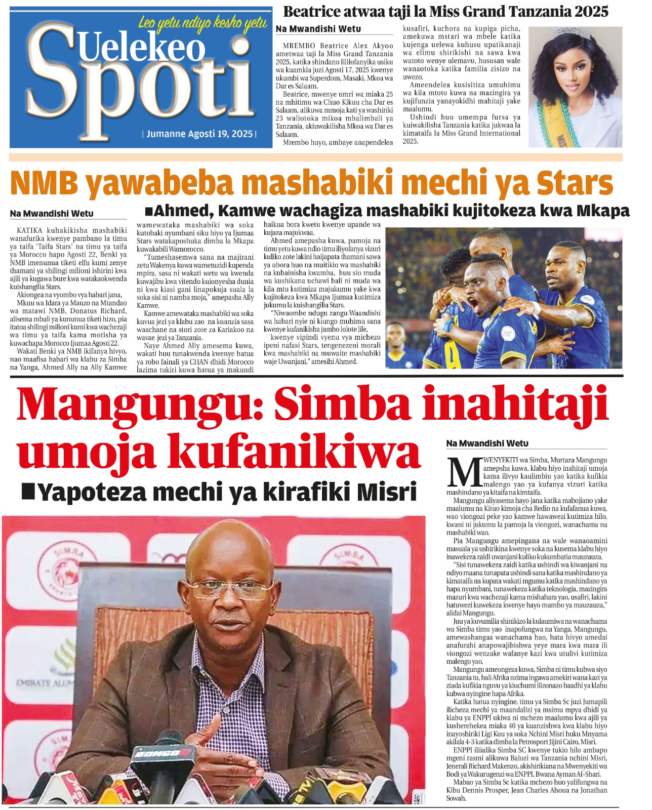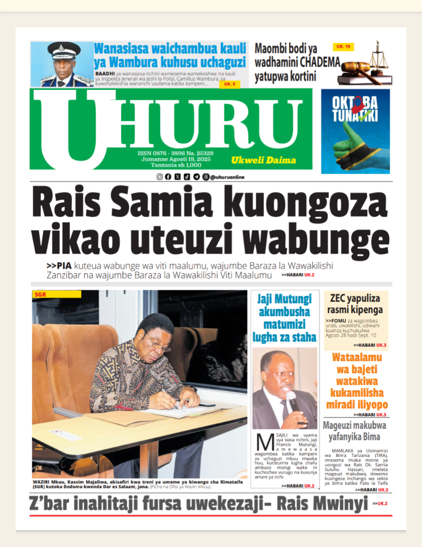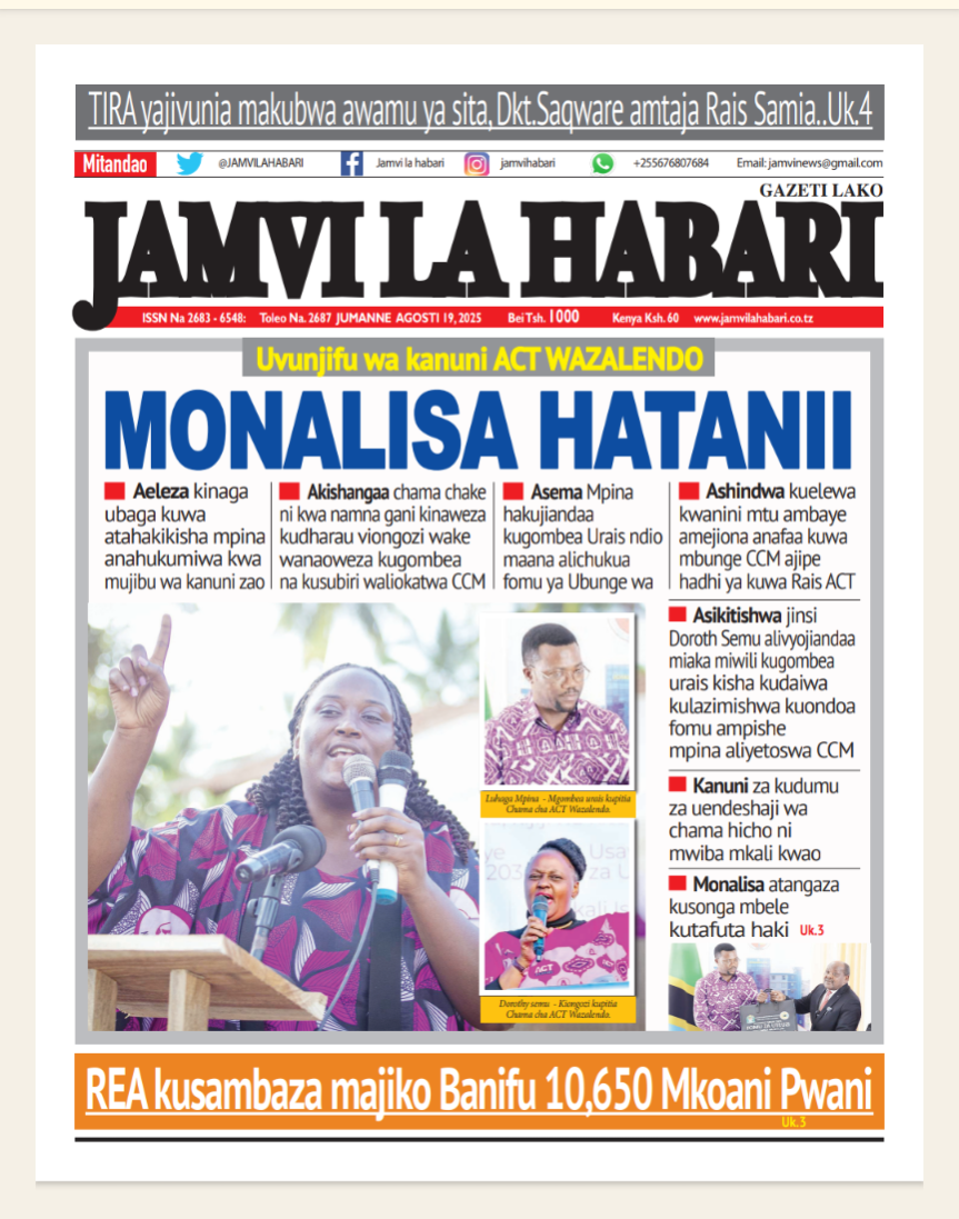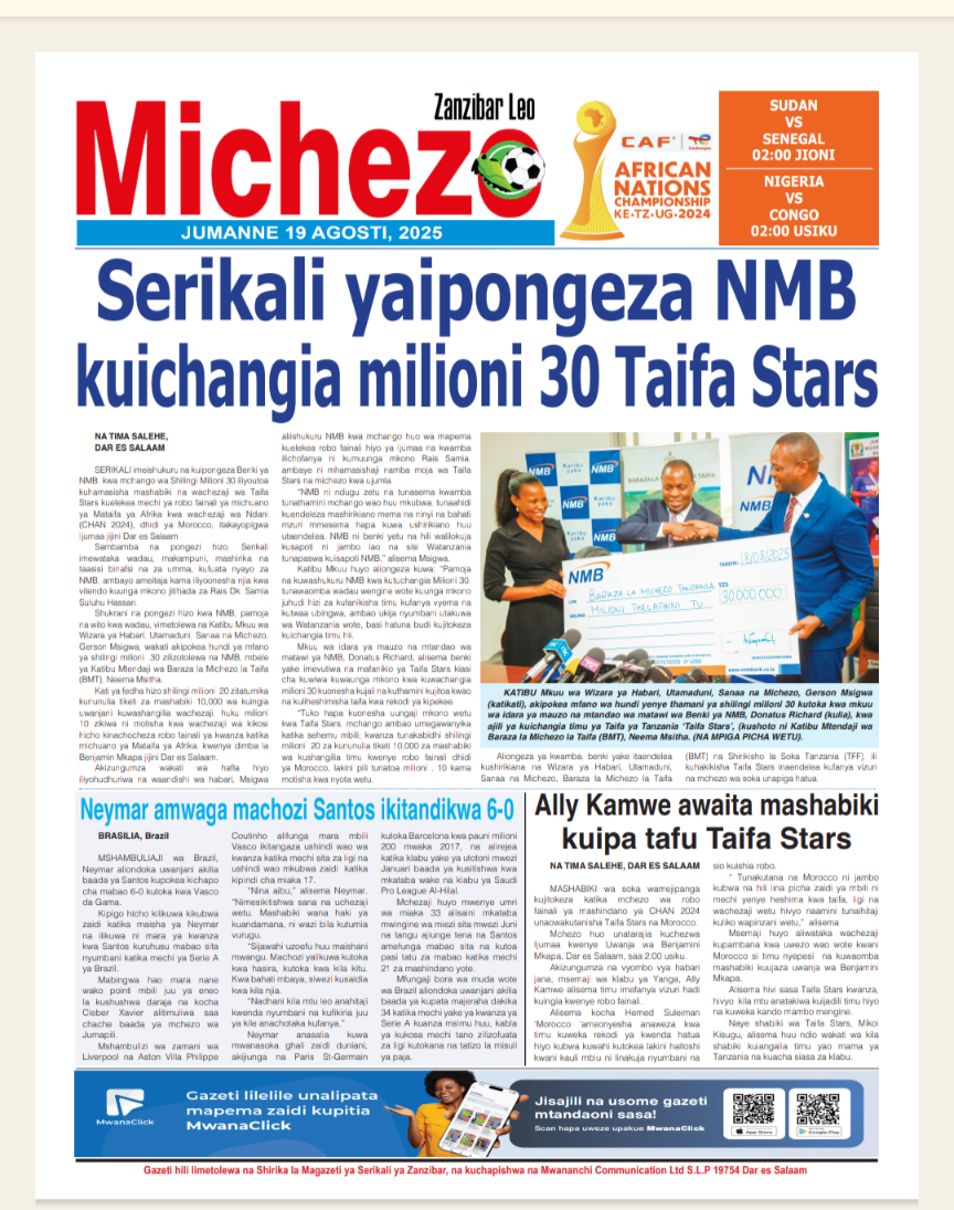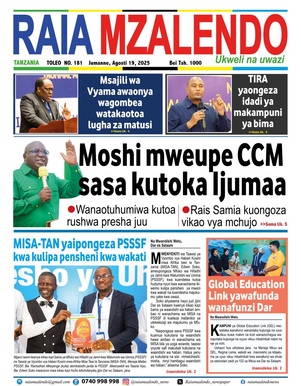 Featured • Magazeti PATA HABARI MOTO MOTO KATIKA MAGAZETI YA LEO AGOSTI 19,2025 1 month agoby Alex Sonna1,791 Views Written by Alex Sonna FacebookXGoogle+PinterestLinkedIn