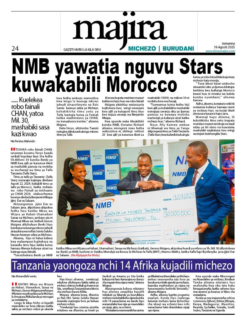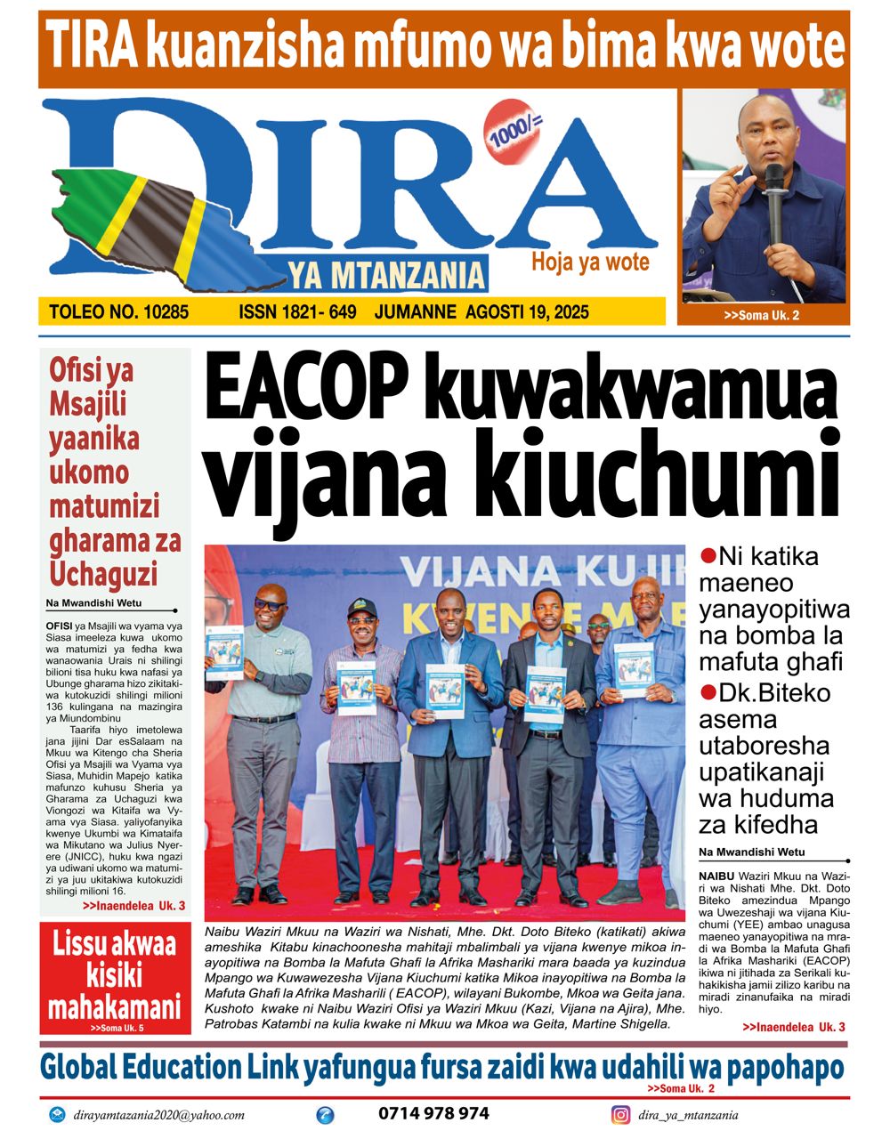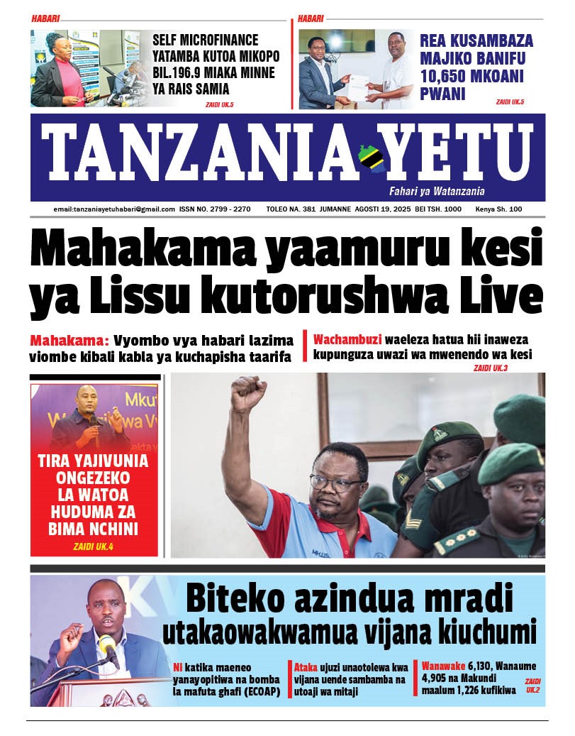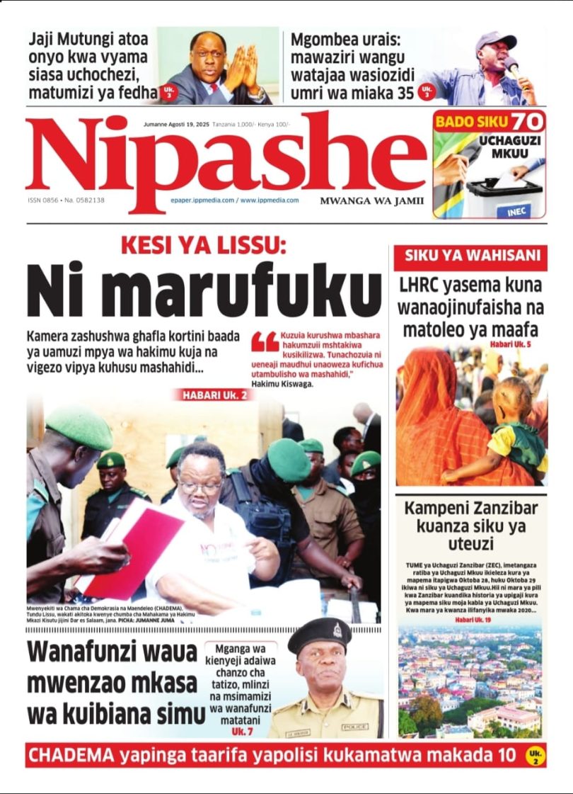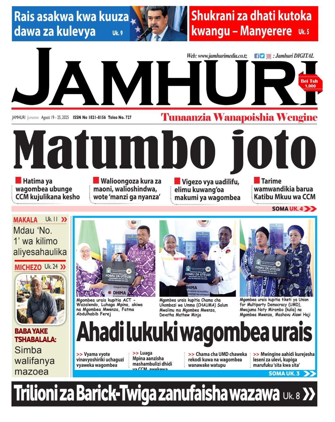 Featured • Magazeti PATA HABARI MOTO MOTO KATIKA MAGAZETI YA LEO AGOSTI 19,2025 1 month agoby Alex Sonna1,791 Views Written by Alex Sonna FacebookXGoogle+PinterestLinkedIn