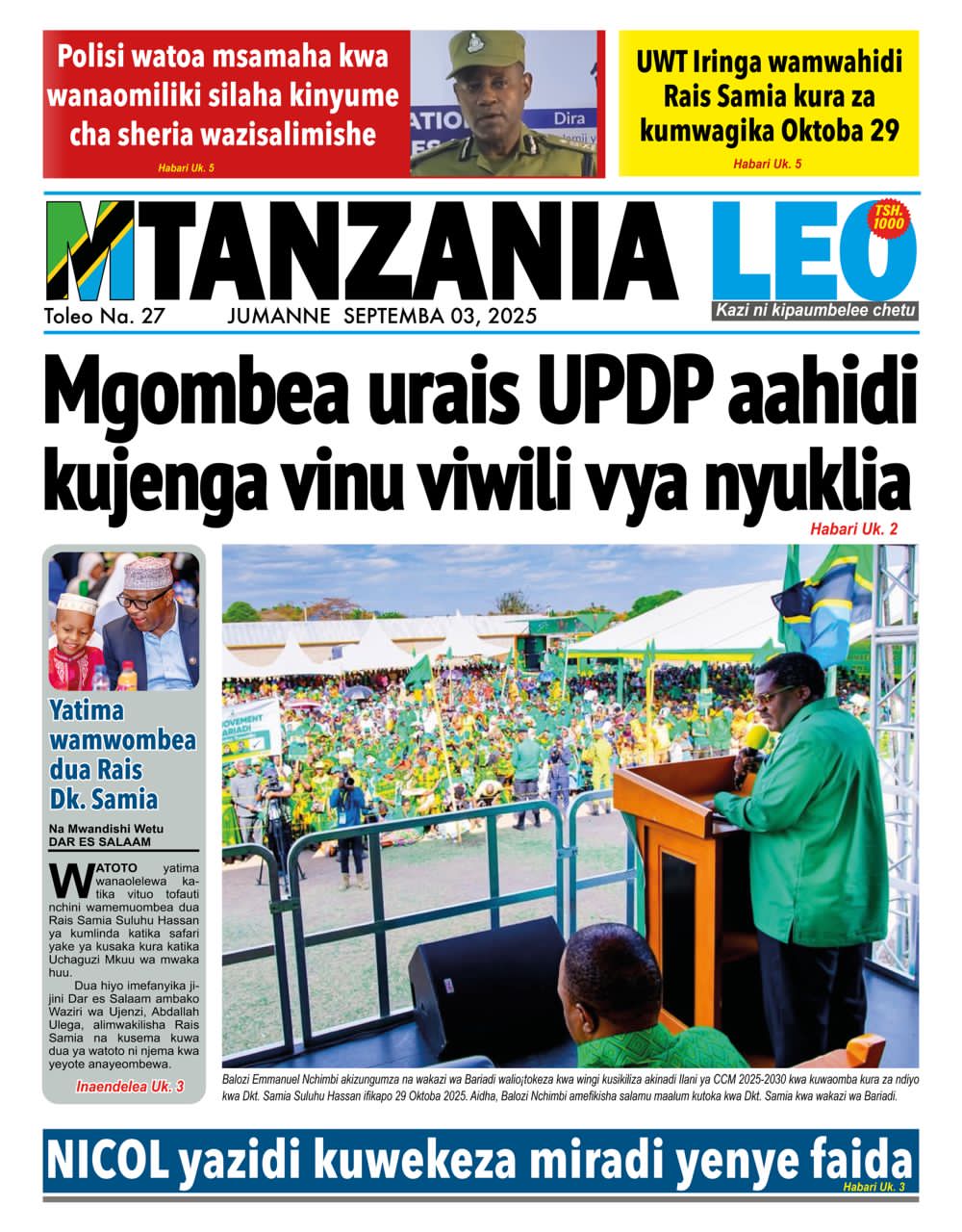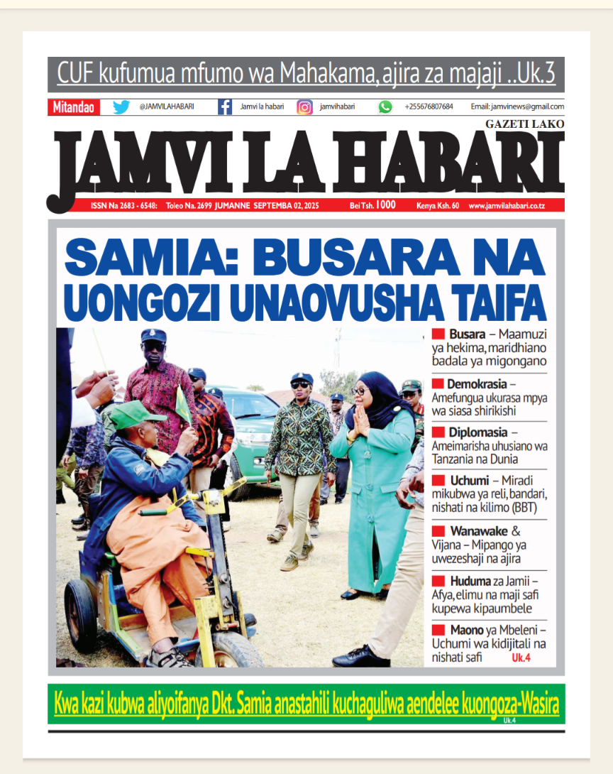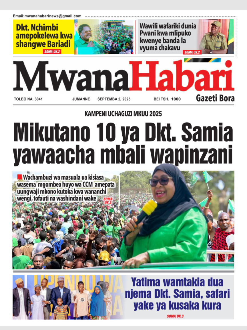 Featured • Magazeti PATA HABARI MOTO MOTO KATIKA MAGAZETI YA LEO JUMANNE SEPTEMBA 2,2025 1 month agoby Alex Sonna1,690 Views Written by Alex Sonna FacebookXGoogle+PinterestLinkedIn