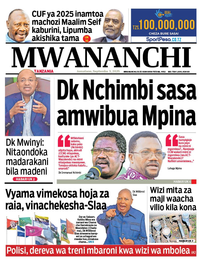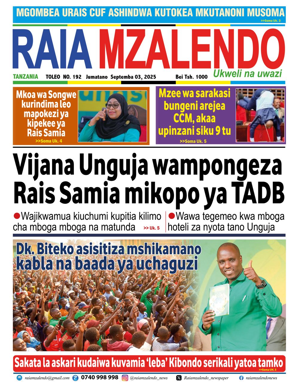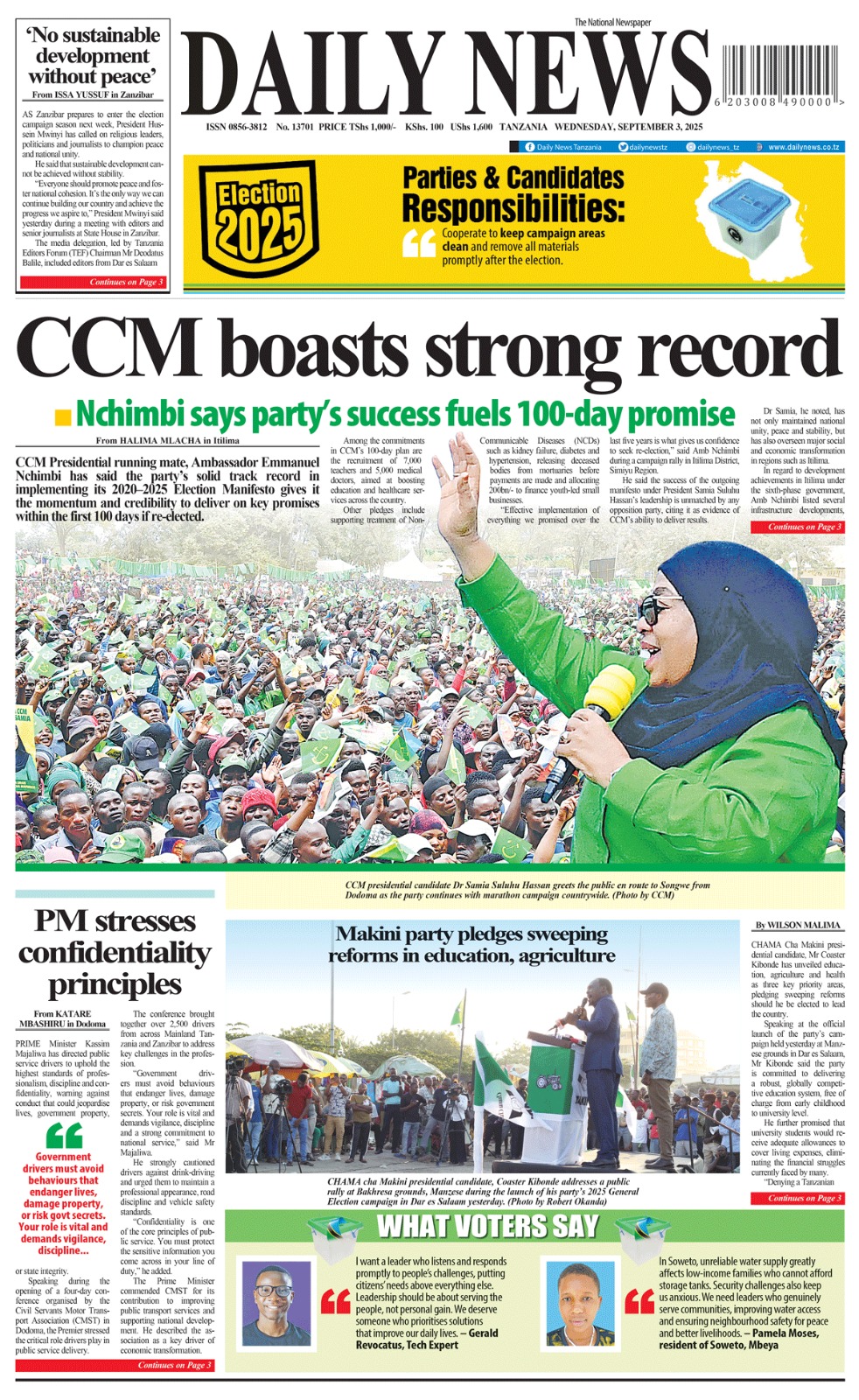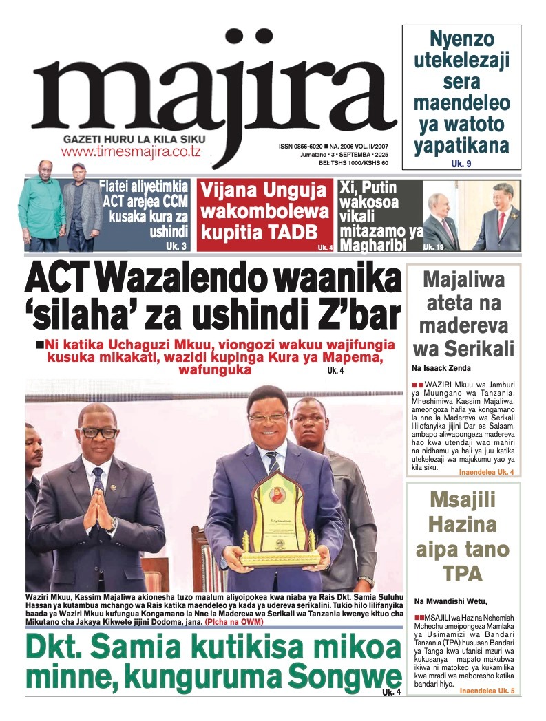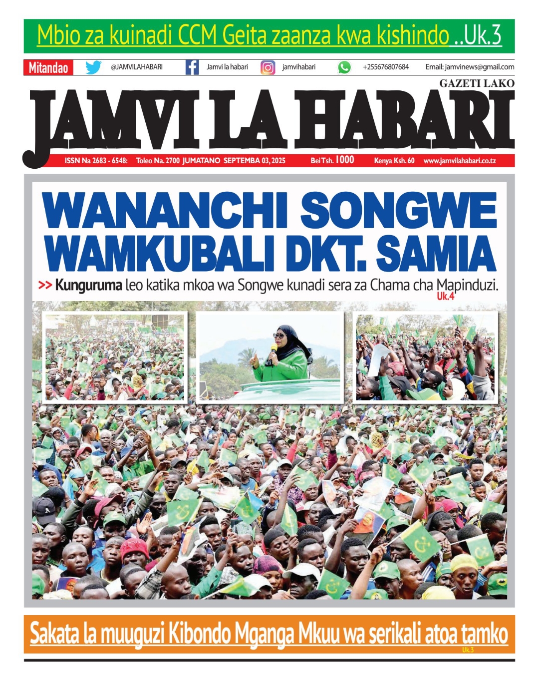 Featured • Magazeti PATA HABARI MOTO MOTO KATIKA MAGAZETI YA LEO JUMATANO SEPTEMBA 3,2025 1 month agoby Alex Sonna1,502 Views Written by Alex Sonna FacebookXGoogle+PinterestLinkedIn