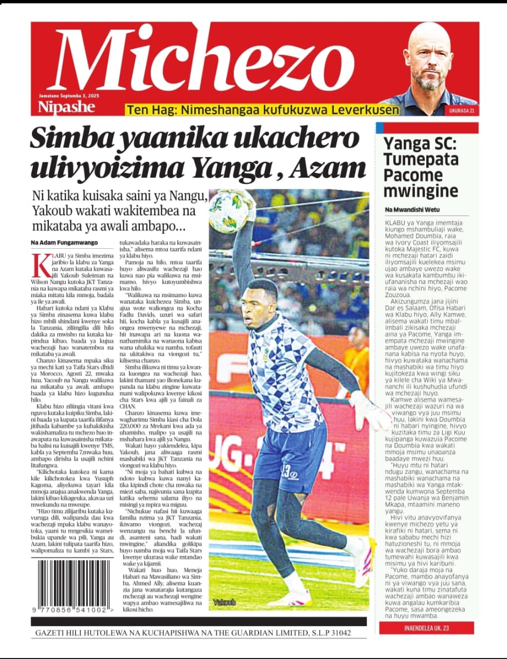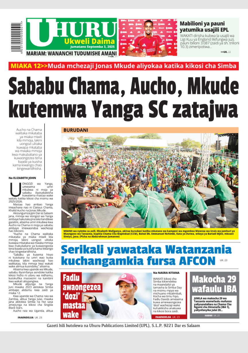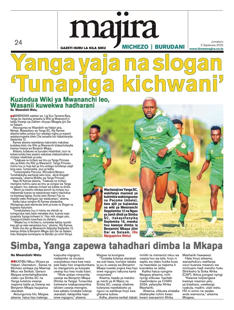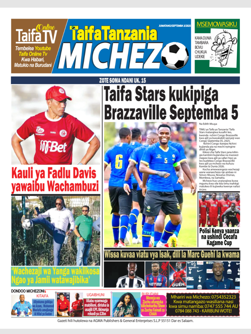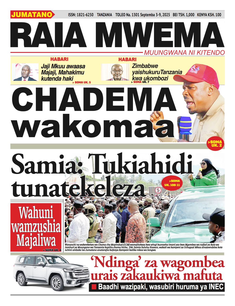 Featured • Magazeti PATA HABARI MOTO MOTO KATIKA MAGAZETI YA LEO JUMATANO SEPTEMBA 3,2025 1 month agoby Alex Sonna1,502 Views Written by Alex Sonna FacebookXGoogle+PinterestLinkedIn