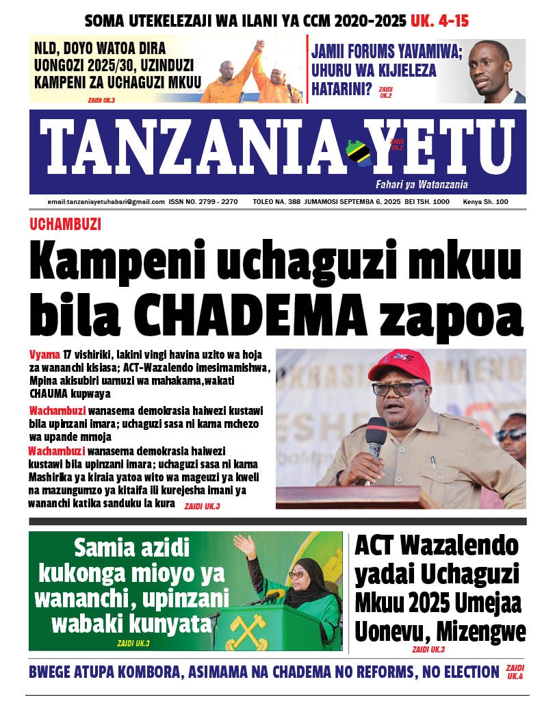 PATA HABARI MOTO MOTO KATIKA MAGAZETI YA LEO JUMAMOSI SEPTEMBA 6,2025
