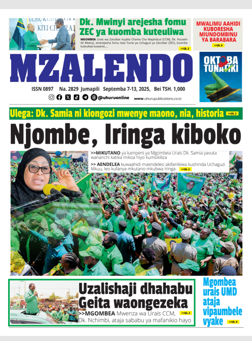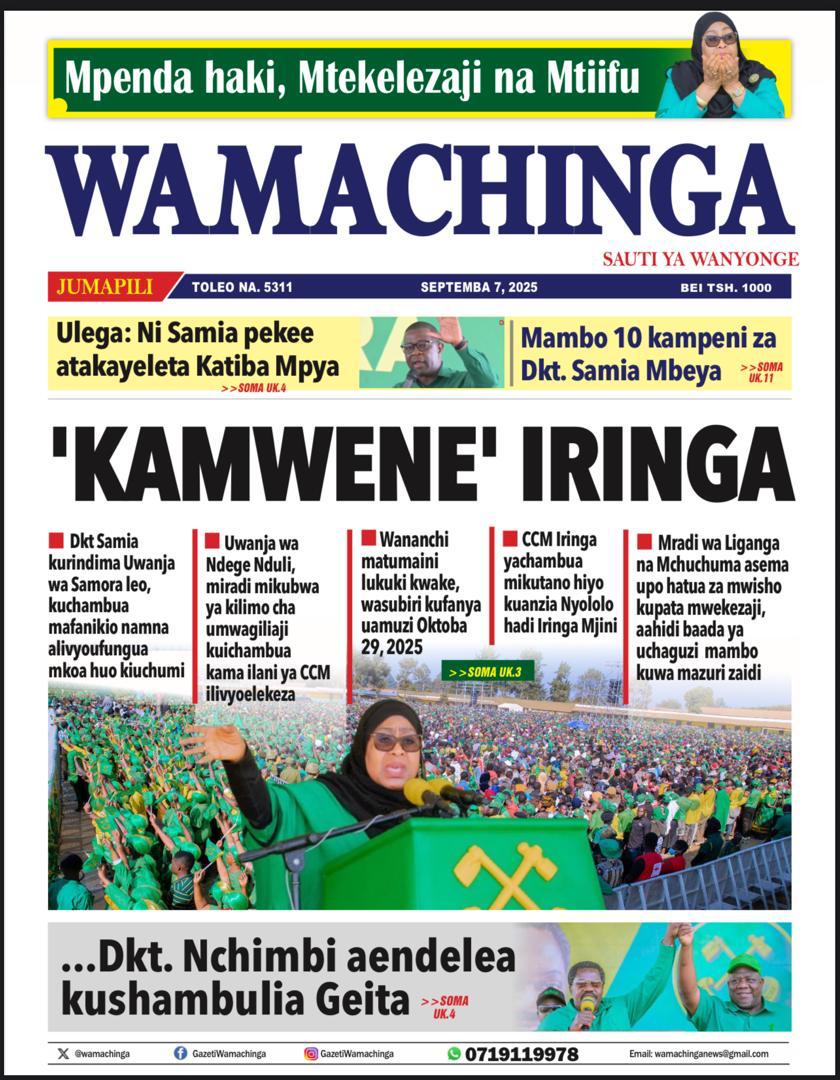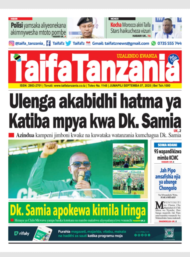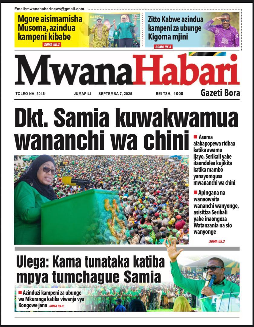 Featured • Magazeti PATA HABARI MOTO MOTO KATIKA MAGAZETI YA LEO JUMAPILI SEPTEMBA 7,2025 2 months agoby Alex Sonna123 Views Written by Alex Sonna FacebookXGoogle+PinterestLinkedIn