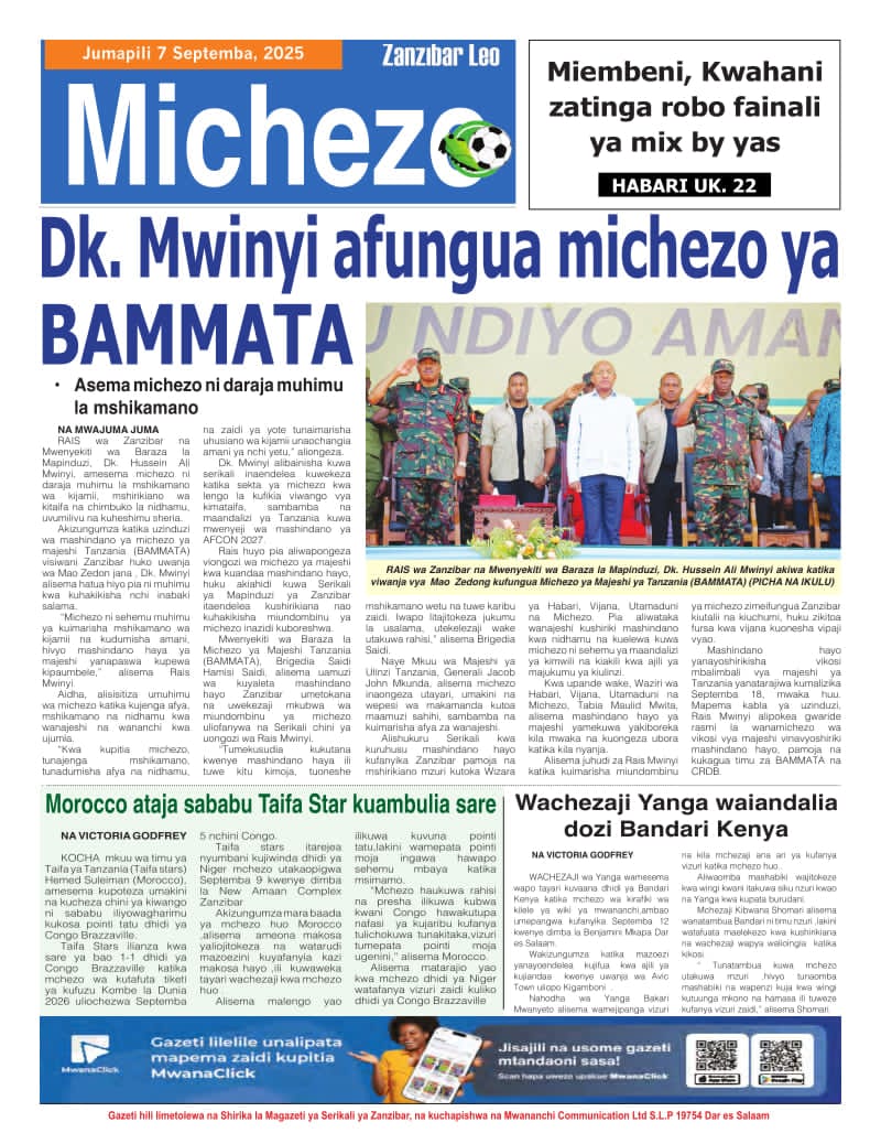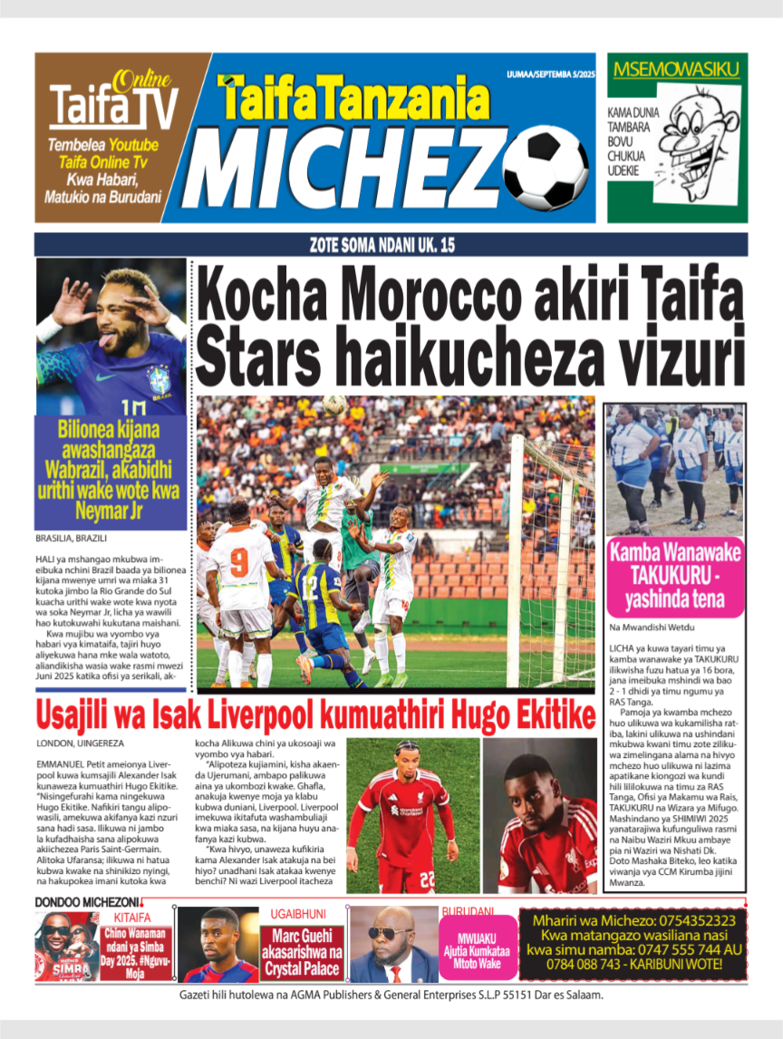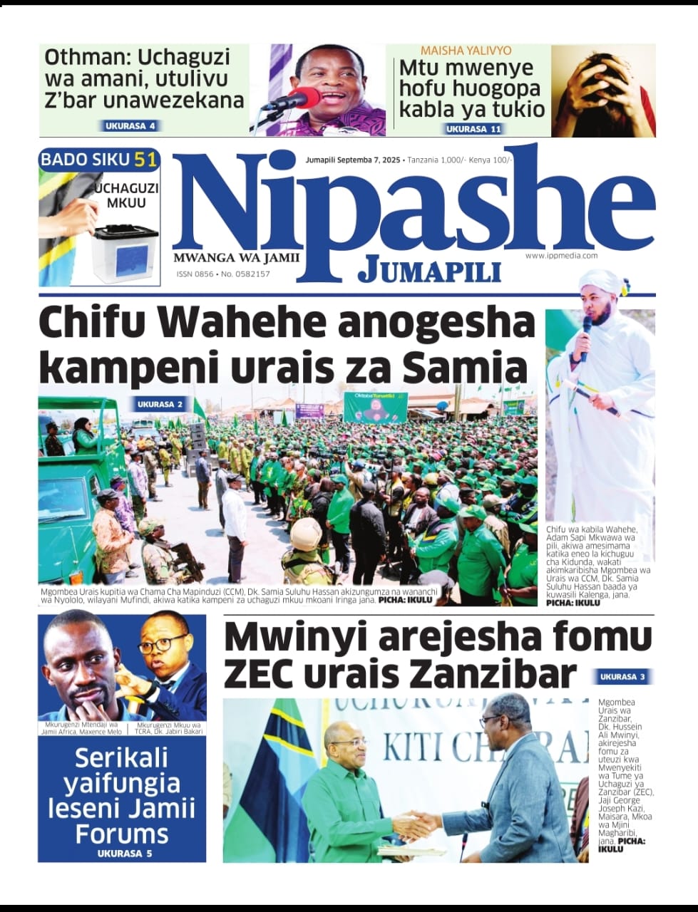Featured • Magazeti PATA HABARI MOTO MOTO KATIKA MAGAZETI YA LEO JUMAPILI SEPTEMBA 7,2025 2 months agoby Alex Sonna123 Views Written by Alex Sonna FacebookXGoogle+PinterestLinkedIn