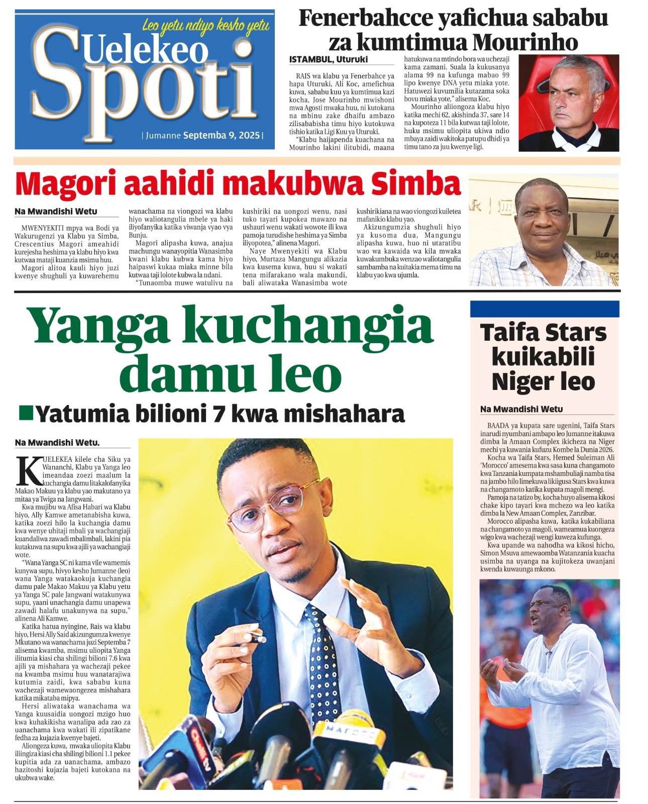 PATA HABARI MOTO MOTO KATIKA MAGAZETI YA LEO JUMANNE SEPTEMBA 9,2025