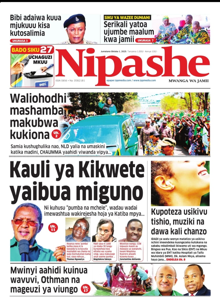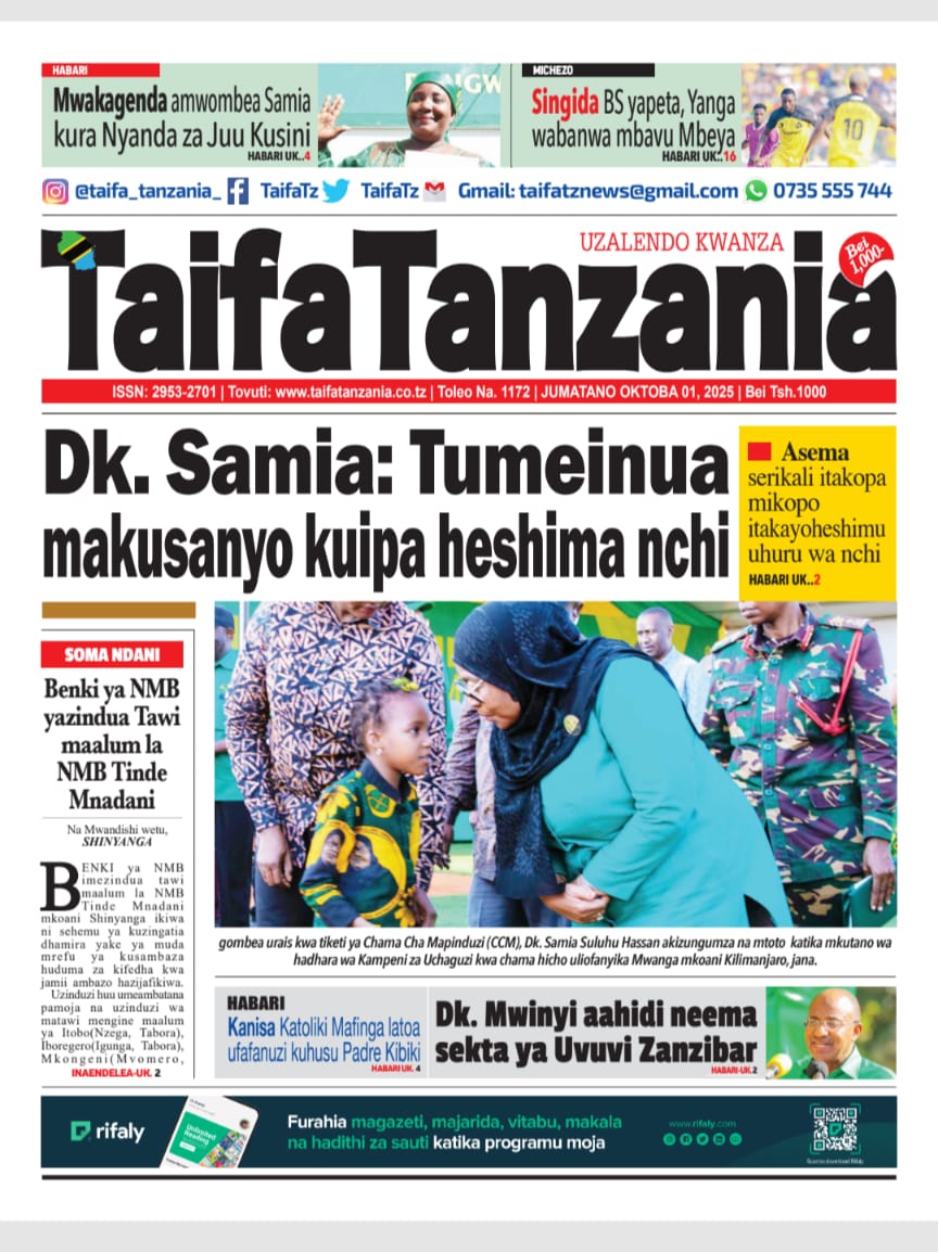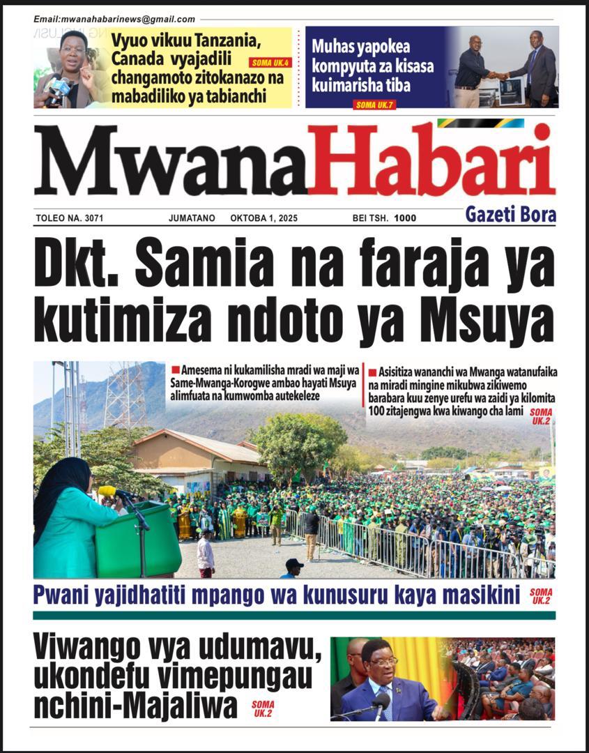 Featured • Magazeti PATA HABARI MOTO MOTO KATIKA MAGAZETI YA LEO JUMATANO OKTOBA 1,2025 34 minutes agoby Alex Sonna23 Views Written by Alex Sonna FacebookXGoogle+PinterestLinkedIn