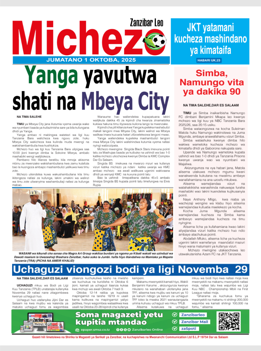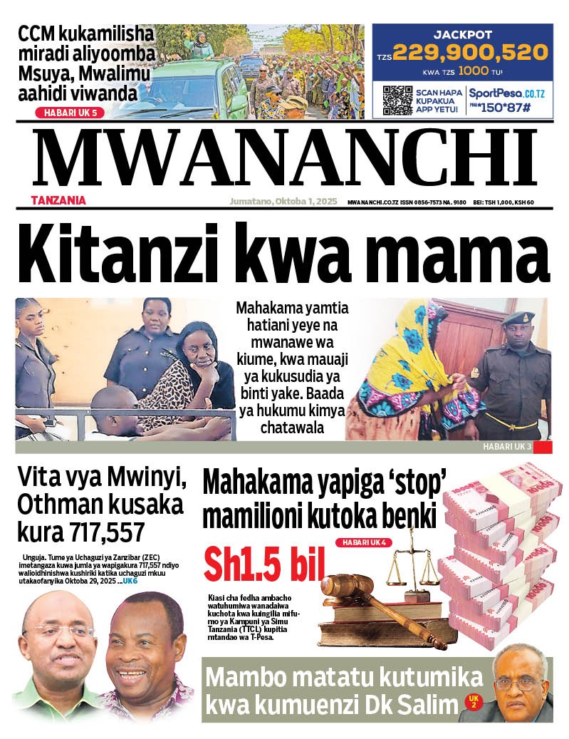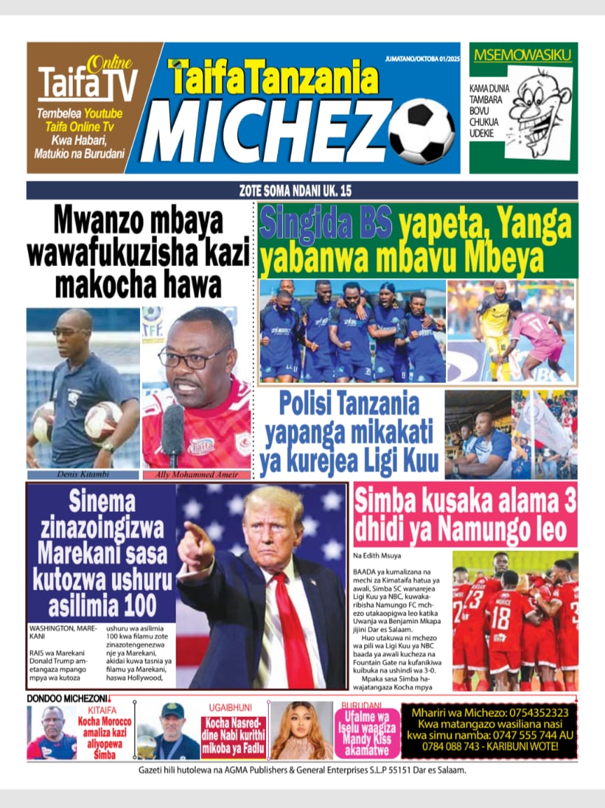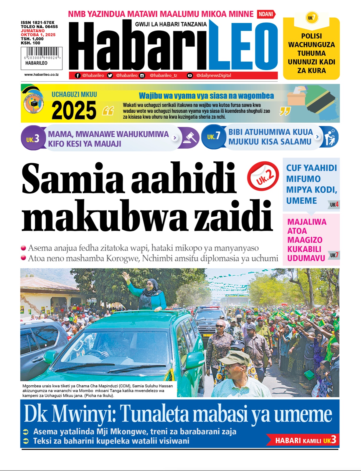 Featured • Magazeti PATA HABARI MOTO MOTO KATIKA MAGAZETI YA LEO JUMATANO OKTOBA 1,2025 34 minutes agoby Alex Sonna23 Views Written by Alex Sonna FacebookXGoogle+PinterestLinkedIn