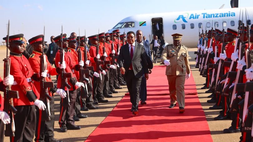 Waziri Mkuu, Kassim Majaliwa akipokea heshima kutoka Jeshi la Malawi alipowasili kwenye Uwanja wa Ndege wa Kimataifa wa Chileka nchini Malawi ambako alimwakilisha Mheshimiwa Rais Dkt. Samia Suluhu Hassan Kwenye uapisho wa Rais Mteule wa Malawi Profesa Arthur Peter Mutharika kwenye uwanja wa Kamuzu Blantyre, Malawi Oktoba 4, 2025. (Picha na Ofisi ya Waziri Mkuu)