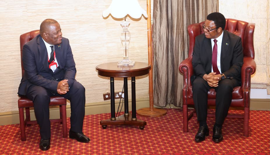 Waziri Mkuu, Kassim Majaliwa akizungumza na Katibu Mkuu Wizara ya Mambo ya Nje ya Malawi, Balozi Dkt. Mwayiwawo Polepole alipowasili kwenye Uwanja wa Ndege wa Kimataifa wa Chileka nchini Malawi ambako alimwakilisha Mheshimiwa Rais Dkt. Samia Suluhu Hassan kwenye uapisho wa wa Rais Mteule wa Malawi Profesa Arthur Peter Mutharika kwenye uwanja wa Kamuzu Blantyre, Malawi Oktoba 4, 2025. (Picha na Ofisi ya Waziri Mkuu)
