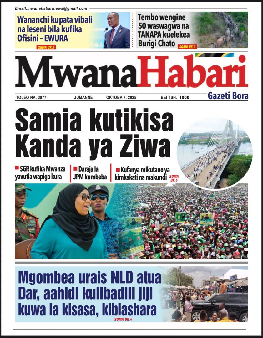 Featured • Magazeti PATA HABARI MOTO MOTO KATIKA MAGAZETI YA LEO JUMANNE OKTOBA 7,2025 4 weeks agoby Alex Sonna1,304 Views Written by Alex Sonna FacebookXGoogle+PinterestLinkedIn