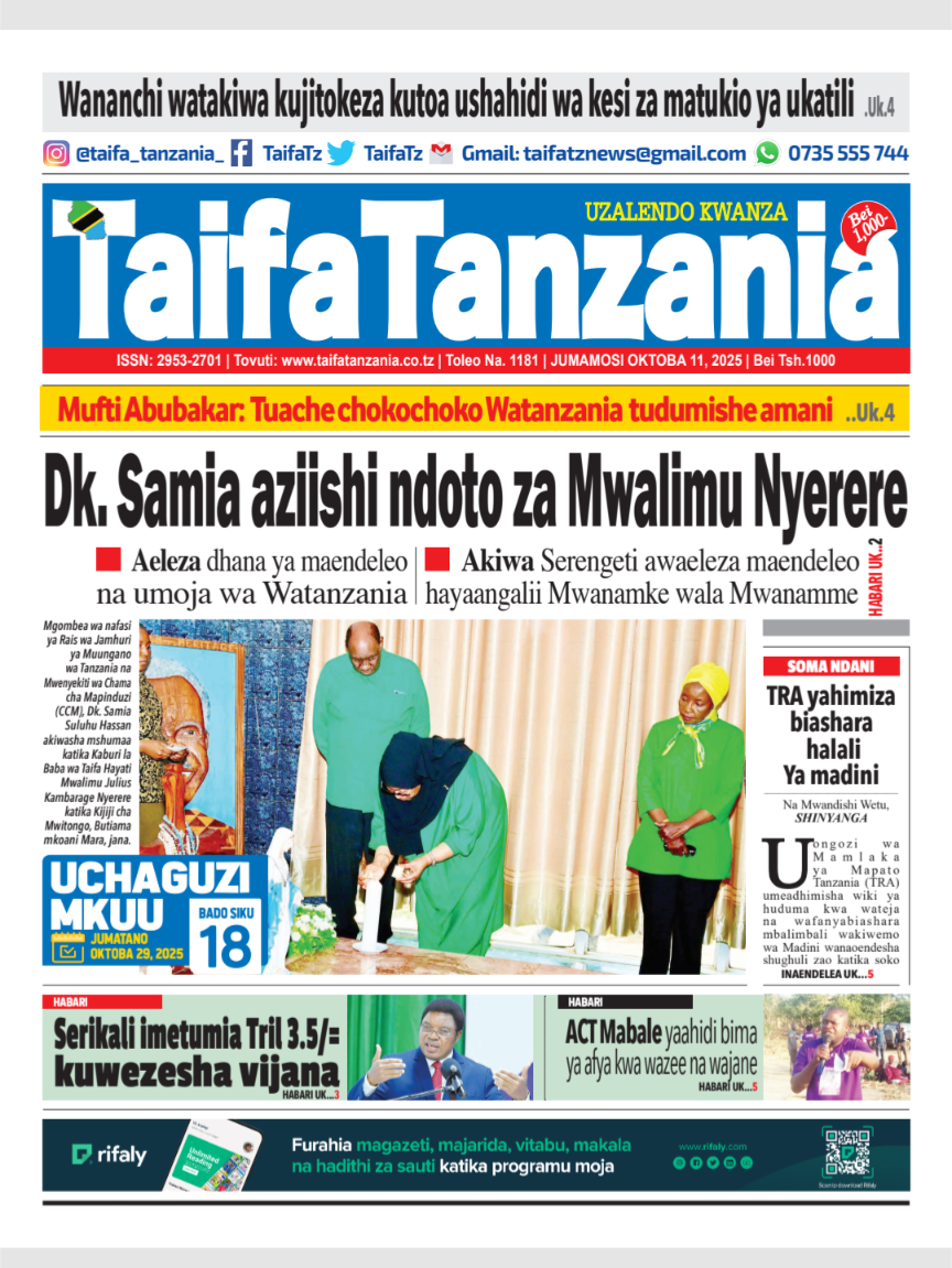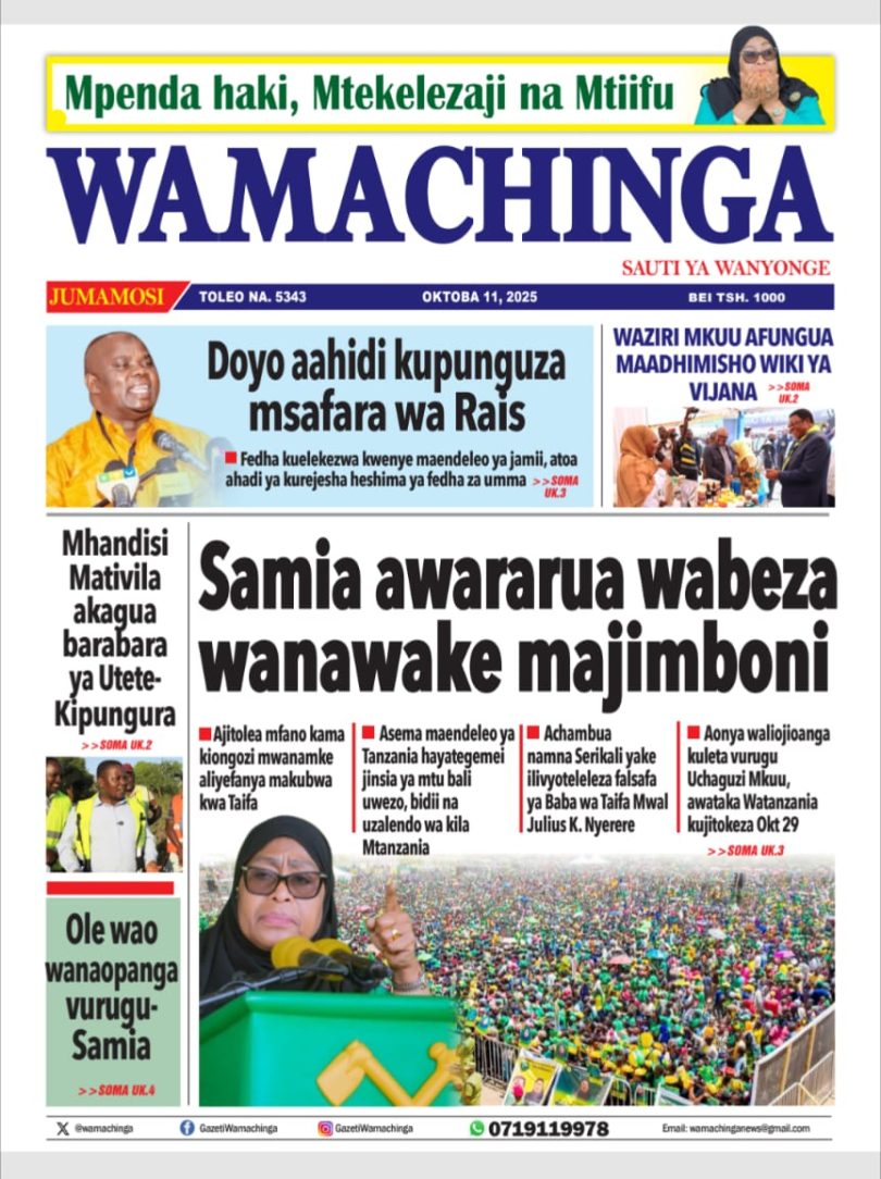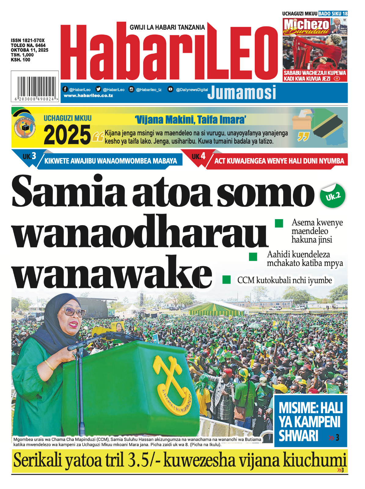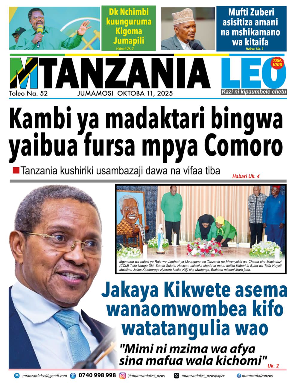 Featured • Magazeti PATA HABARI MOTO MOTO KATIKA MAGAZETI YA LEO OKTOBA 11,2025 13 minutes agoby Alex Sonna2 Views Written by Alex Sonna aa FacebookXGoogle+PinterestLinkedIn