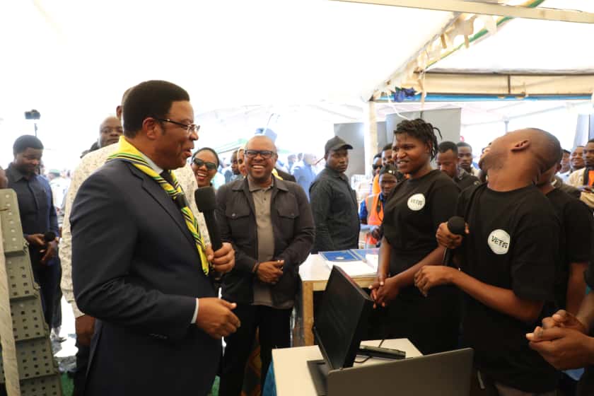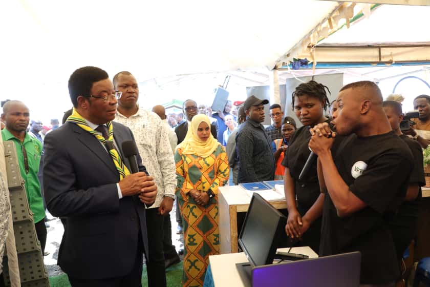 Katika banda hilo, Waziri Mkuu alikutana na Francis Anthony, mhitimu wa VETA ambaye kwa sasa ni mwalimu wa kompyuta. Francis alieleza jinsi alivyopata mafunzo na baadaye kuajiriwa kufundisha vijana wengine.