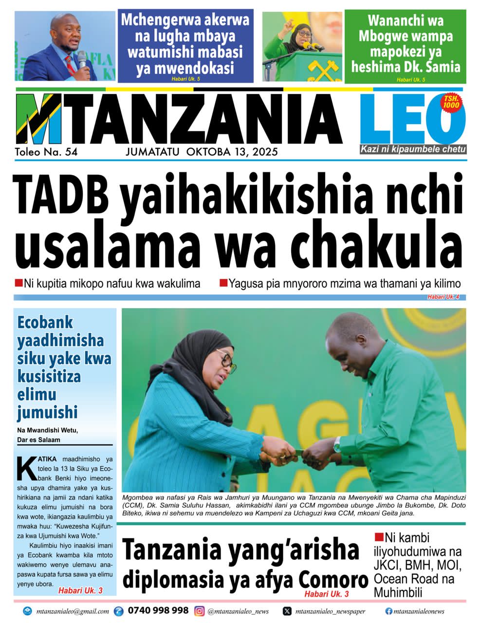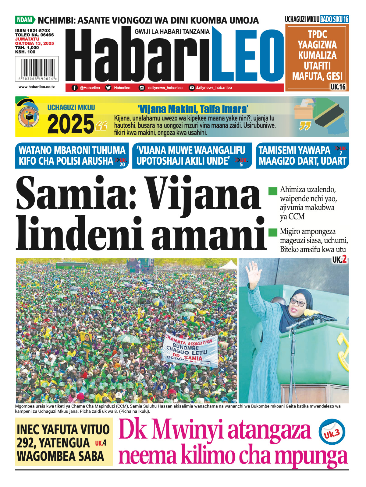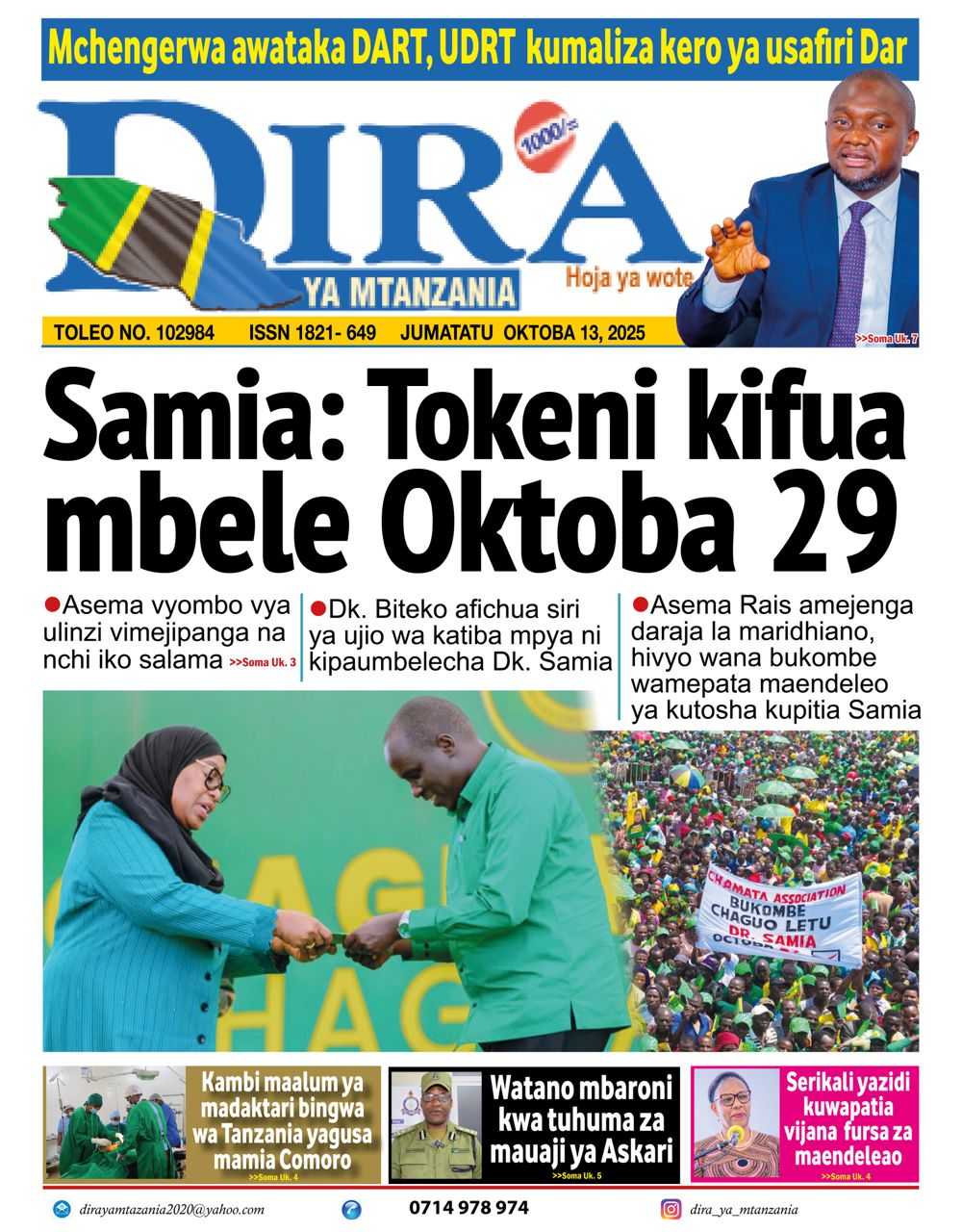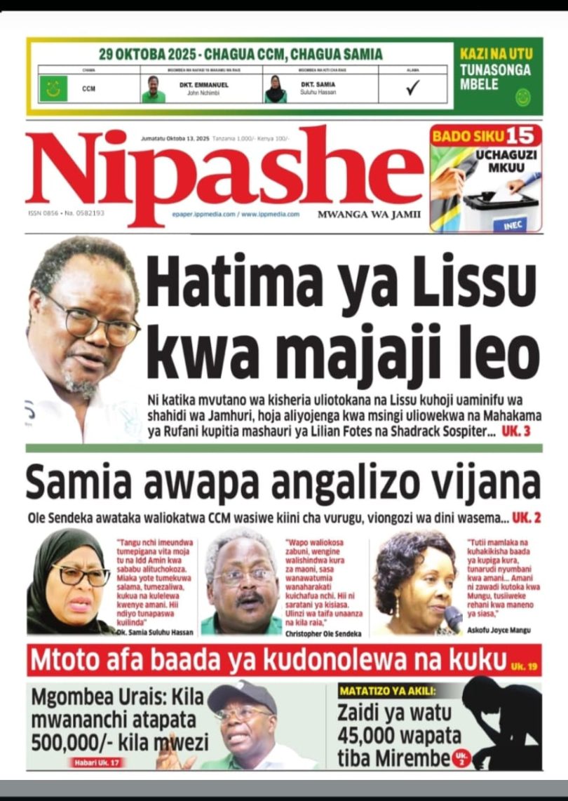 Featured • Kitaifa • Magazeti PATA HABARI MOTO MOTO KATIKA MAGAZETI YA LEO JUMATATU OKTOBA 13,2025 36 minutes agoby Alex Sonna7 Views Written by Alex Sonna aa FacebookXGoogle+PinterestLinkedIn