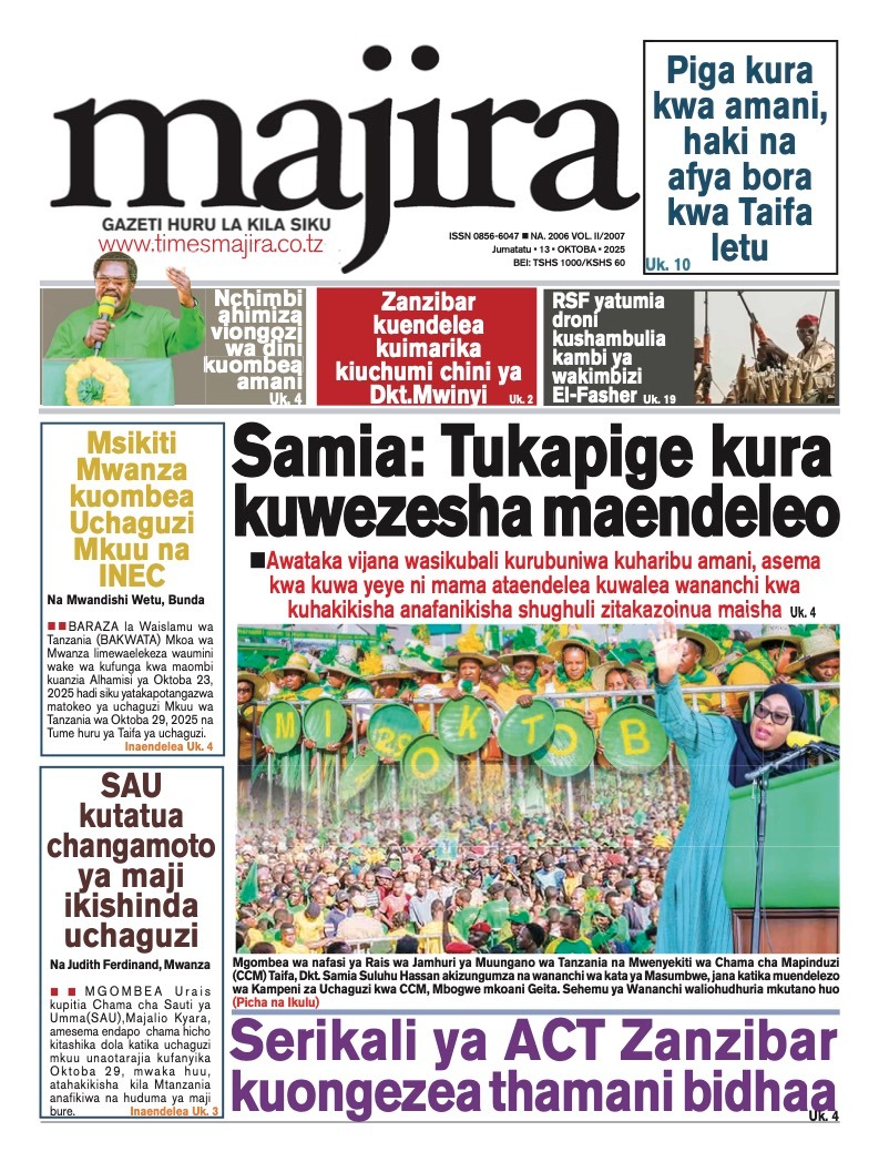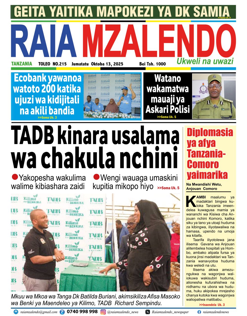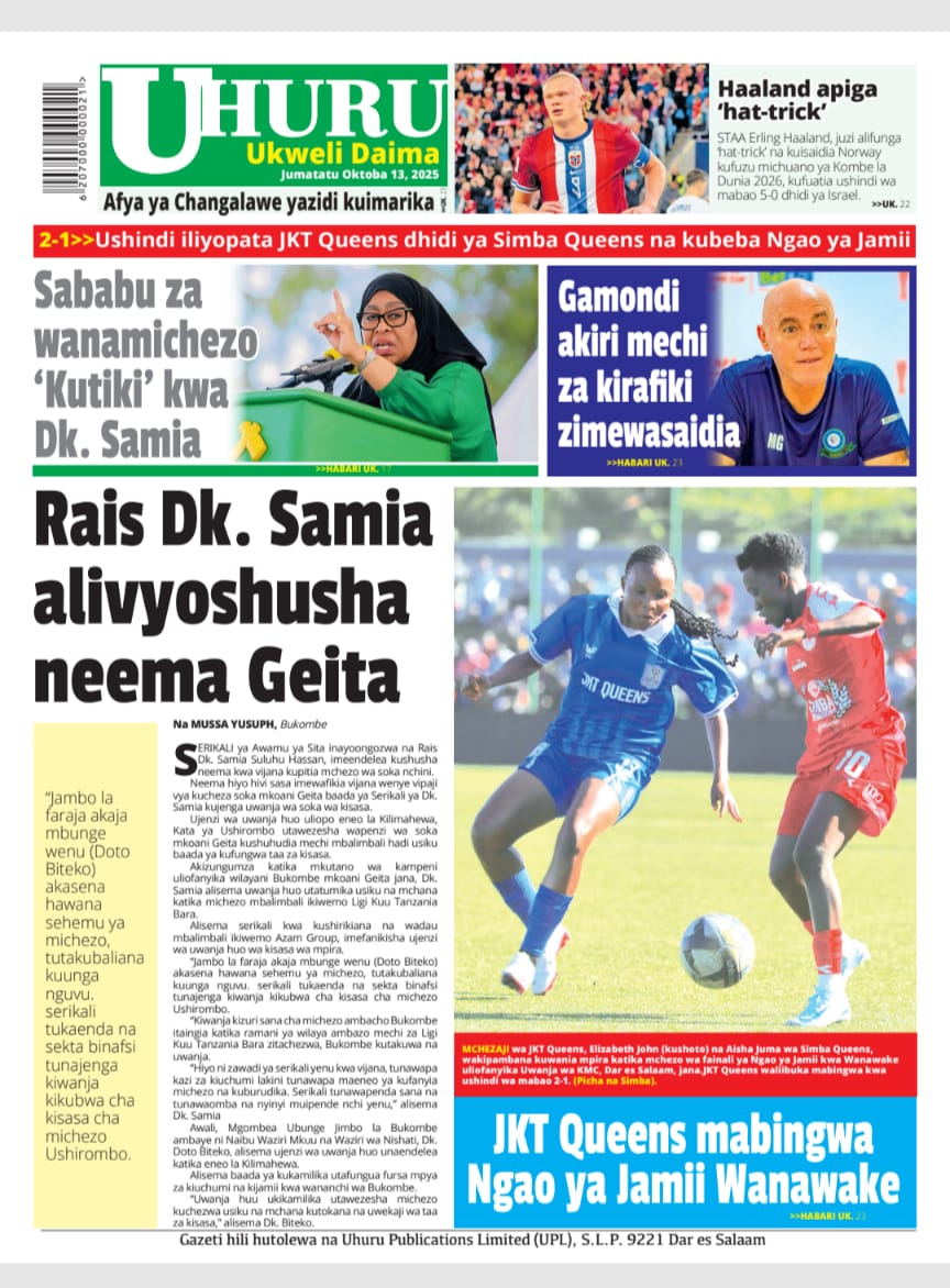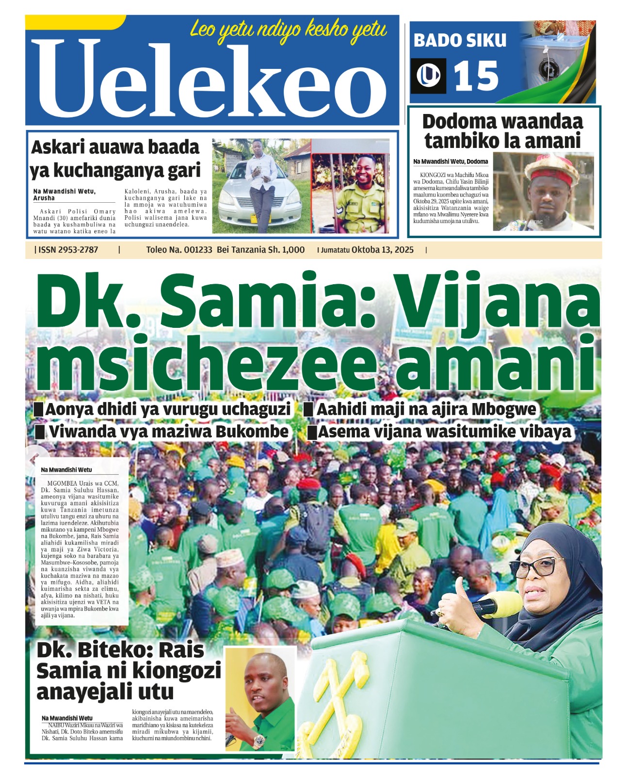 Featured • Kitaifa • Magazeti PATA HABARI MOTO MOTO KATIKA MAGAZETI YA LEO JUMATATU OKTOBA 13,2025 36 minutes agoby Alex Sonna7 Views Written by Alex Sonna aa FacebookXGoogle+PinterestLinkedIn
