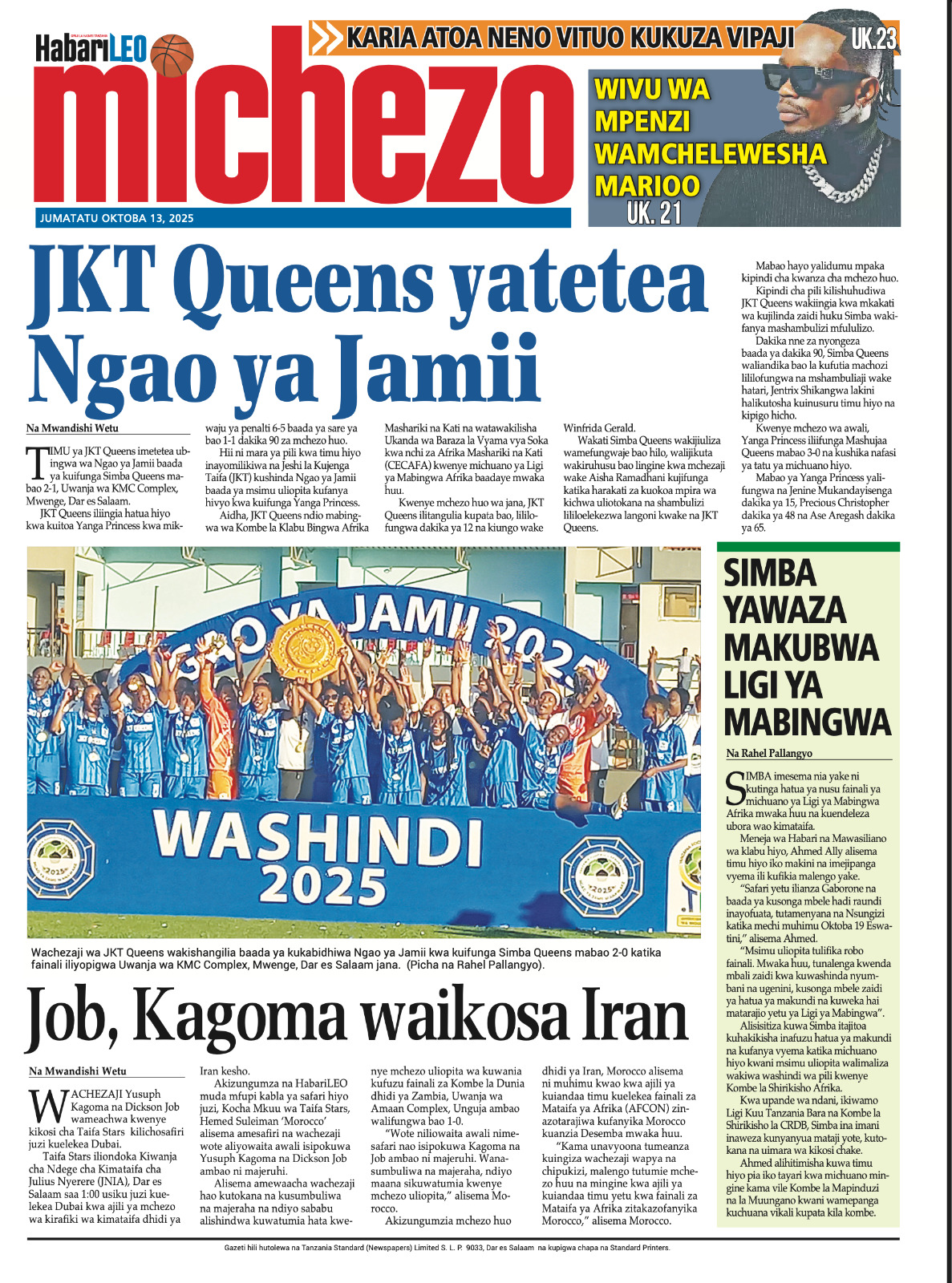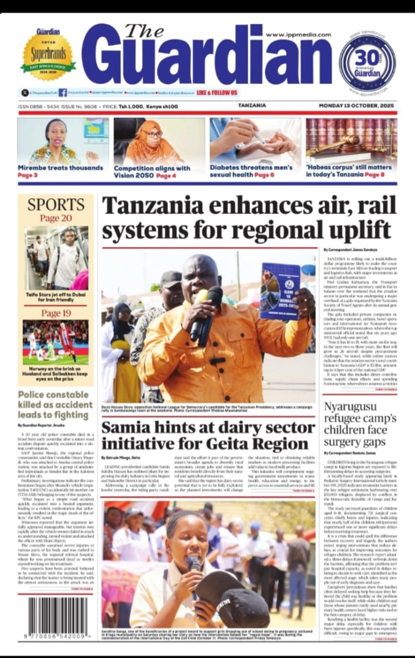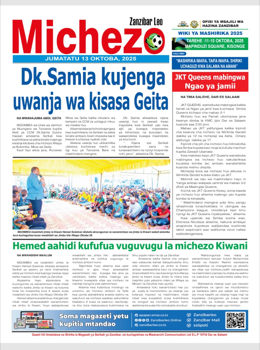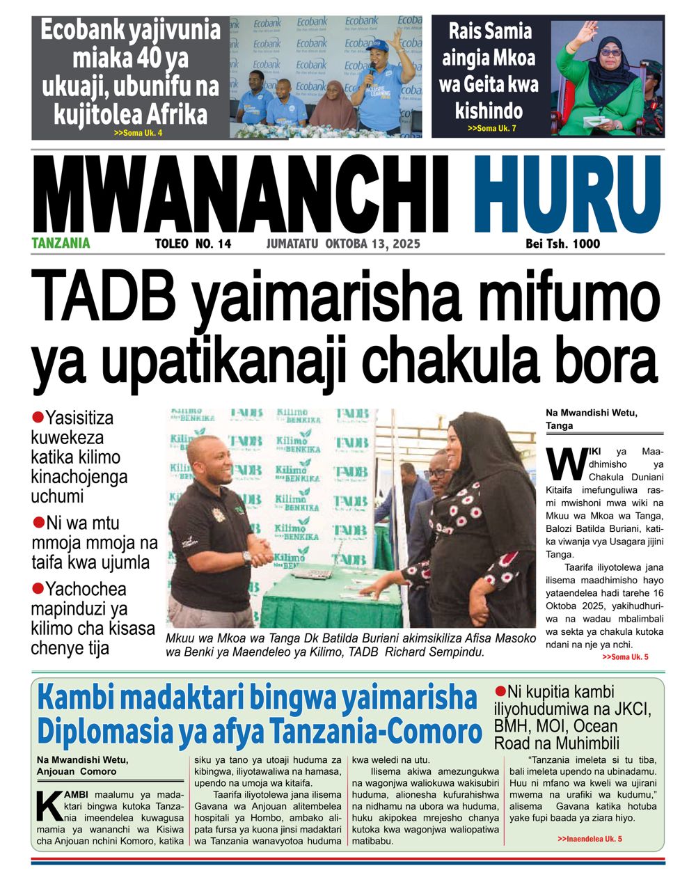 Featured • Kitaifa • Magazeti PATA HABARI MOTO MOTO KATIKA MAGAZETI YA LEO JUMATATU OKTOBA 13,2025 36 minutes agoby Alex Sonna7 Views Written by Alex Sonna aa FacebookXGoogle+PinterestLinkedIn