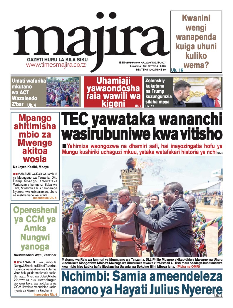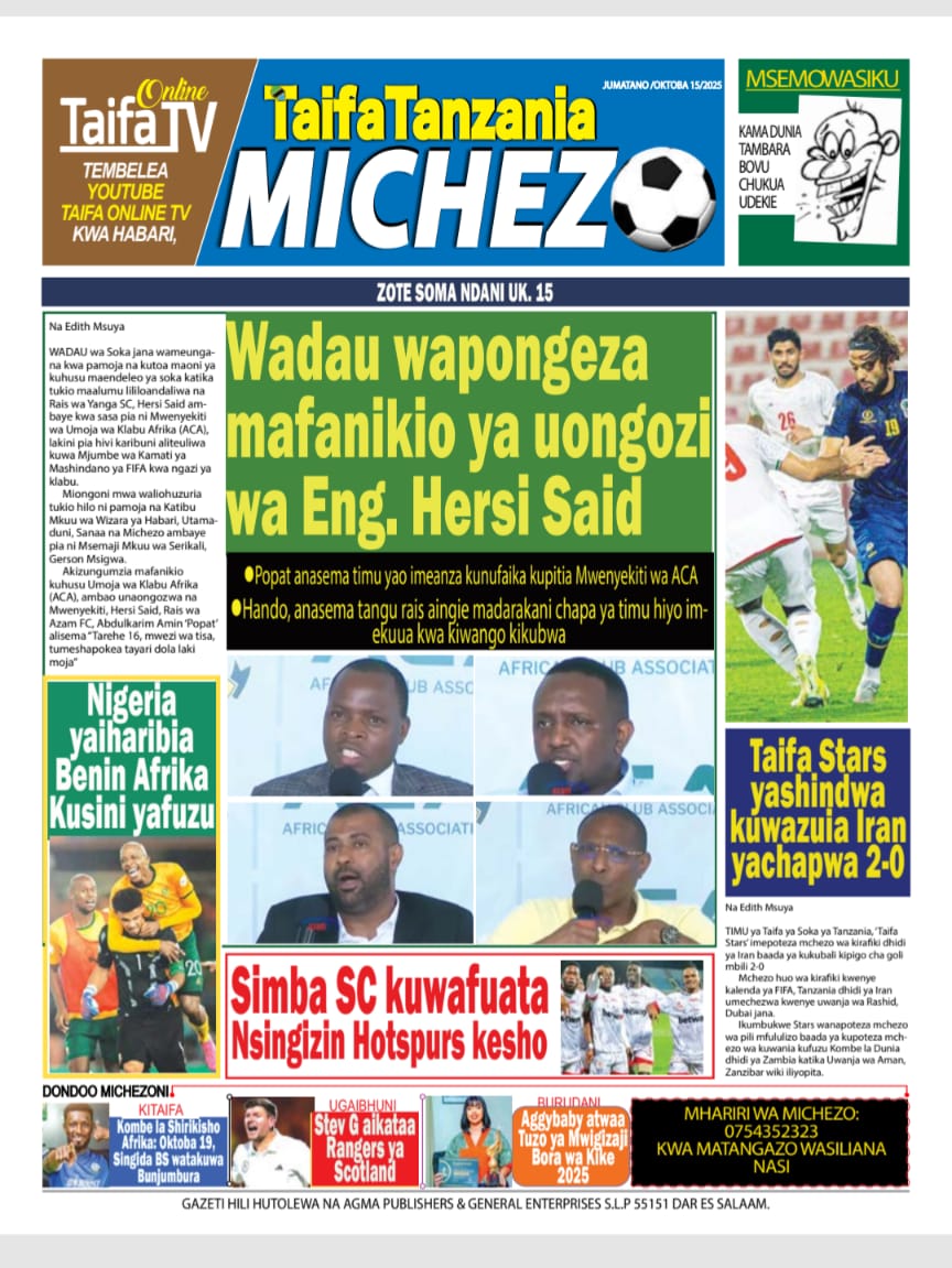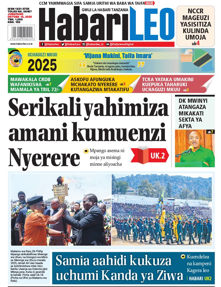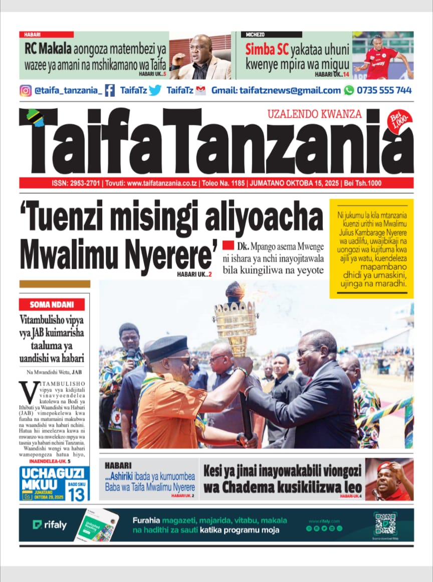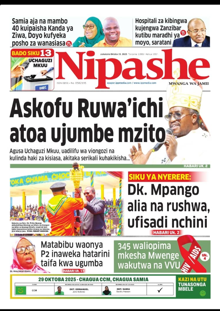 Featured • Magazeti PATA HABARI MOTO MOTO KATIKA MAGAZETI YA LEO OKTOBA 15,2025 1 hour agoby Alex Sonna5 Views Written by Alex Sonna FacebookXGoogle+PinterestLinkedIn