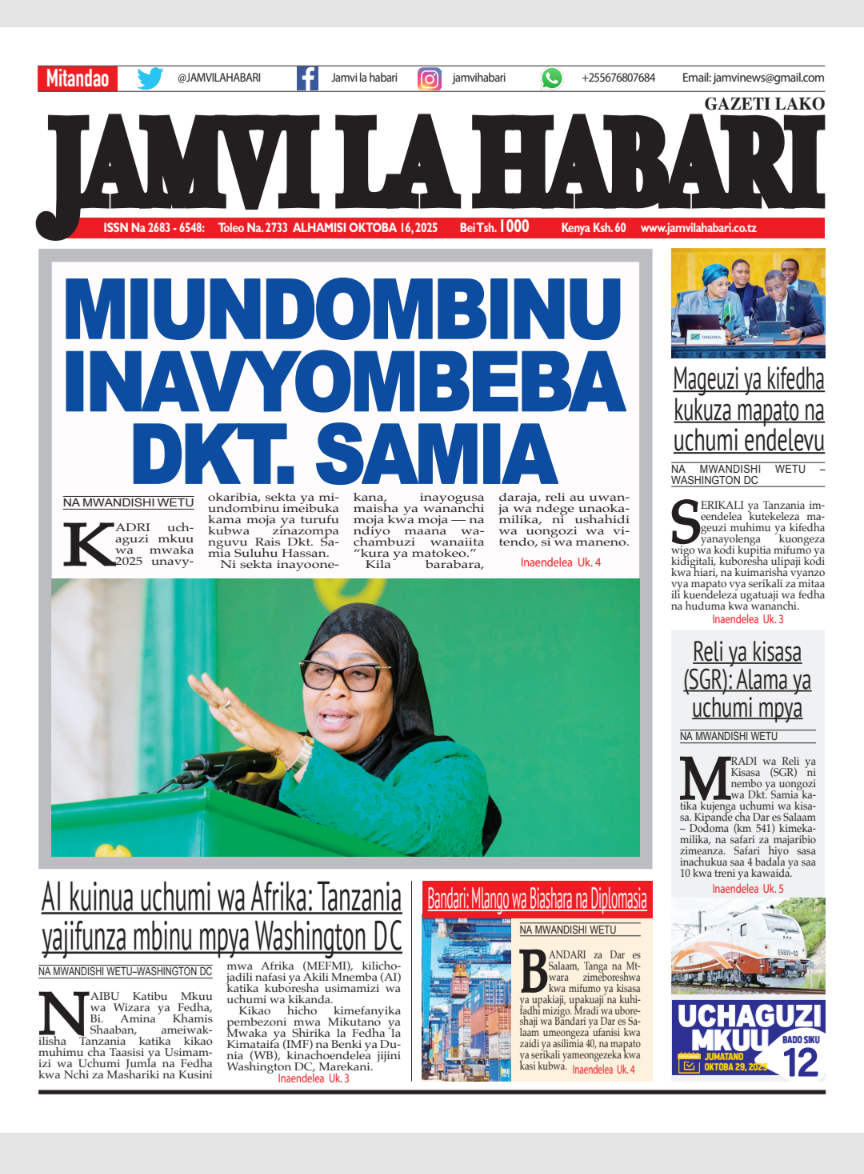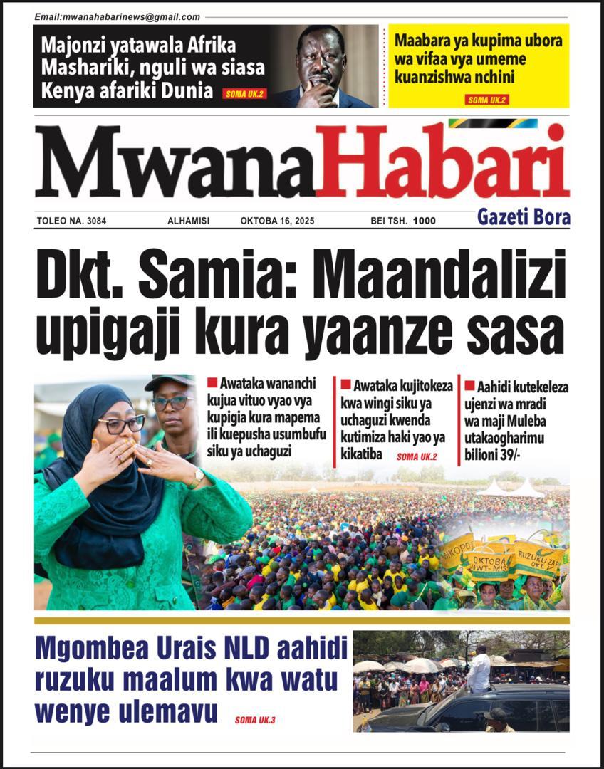 Featured • Magazeti PATA HABARI MOTO MOTO KATIKA MAGAZETI YA LEO OKTOBA 16,2025 3 weeks agoby Alex Sonna721 Views Written by Alex Sonna aa FacebookXGoogle+PinterestLinkedIn