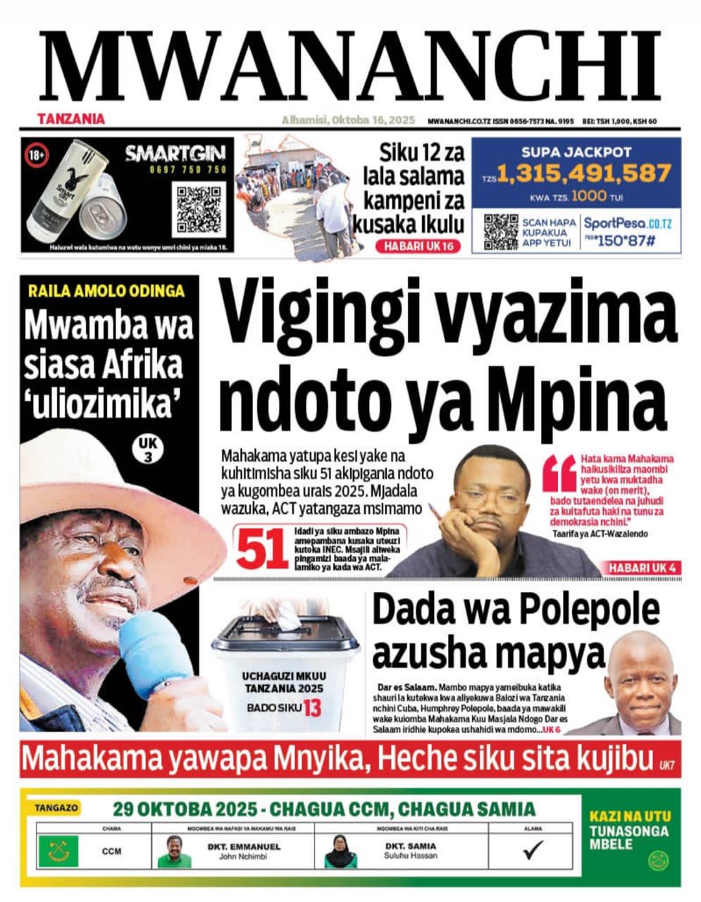PATA HABARI MOTO MOTO KATIKA MAGAZETI YA LEO IJUMAA OKTOBA 17,2025