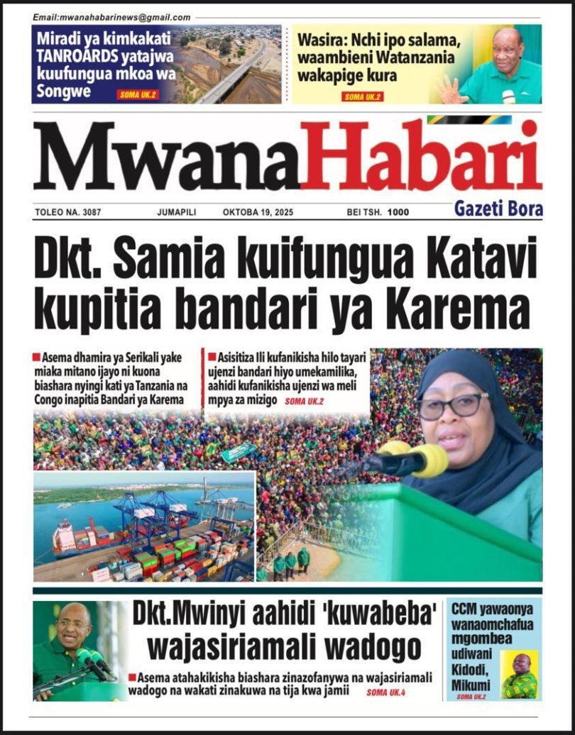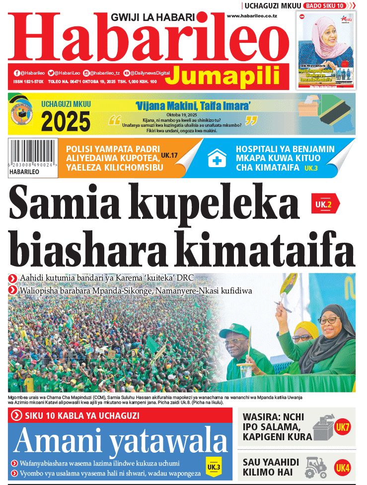 Featured • Magazeti PATA HABARI MOTO MOTO KATIKA MAGAZETI YA LEO JUMAPILI OKTOBA 19,2025 2 minutes agoby Alex Sonna1 Views Written by Alex Sonna a FacebookXGoogle+PinterestLinkedIn