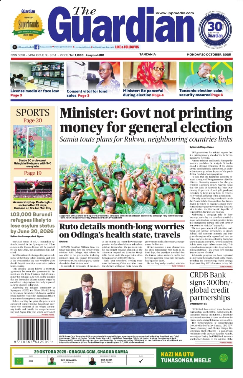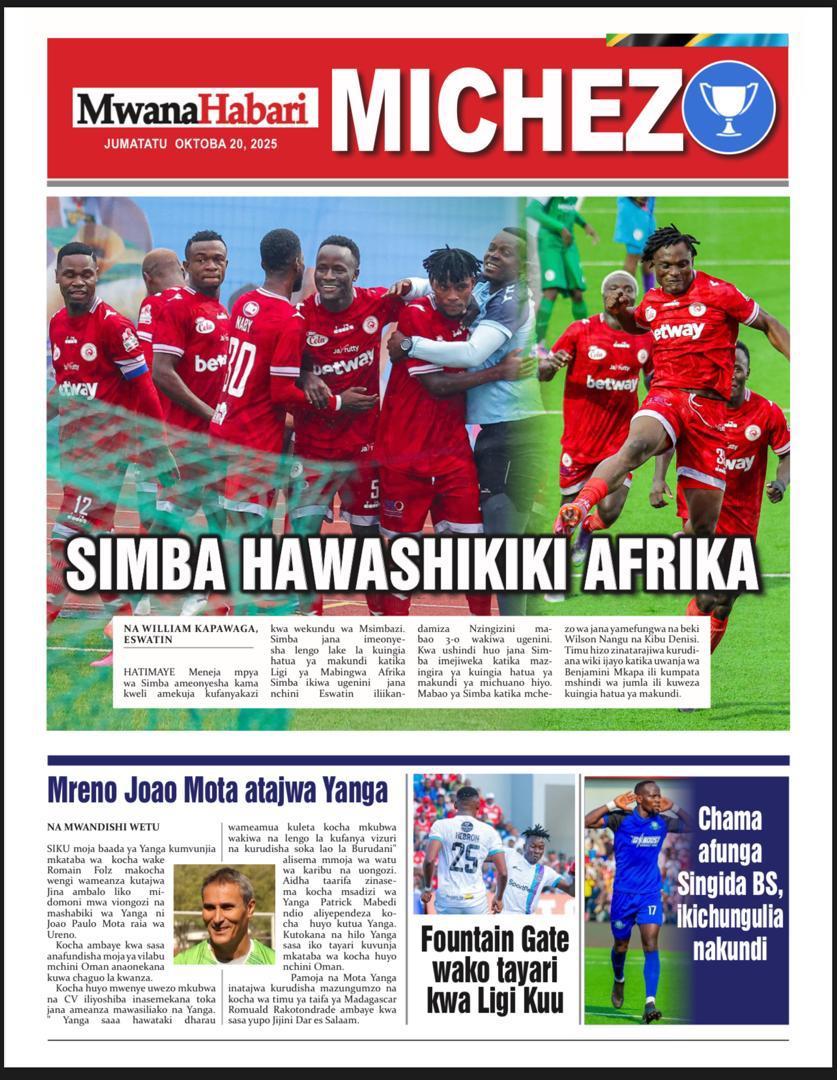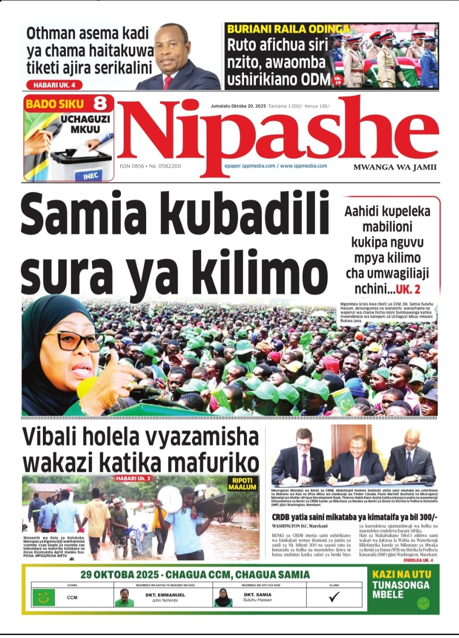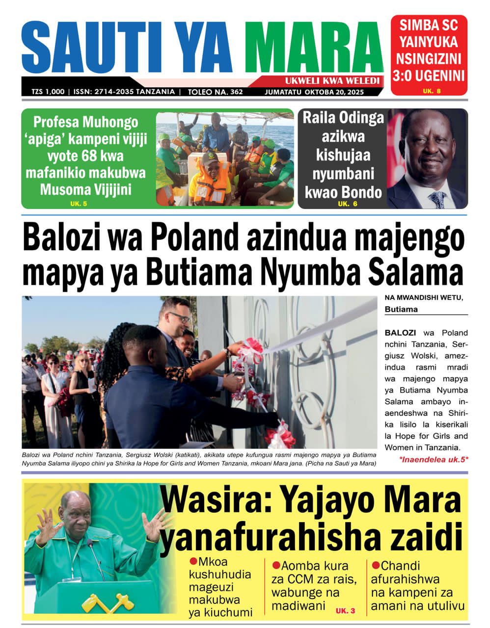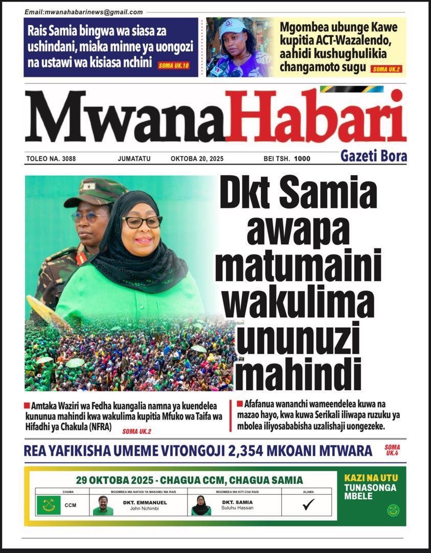 Featured • Magazeti PATA HABARI MOTO MOTO KATIKA MAGAZETI YA LEO JUMATATU OKTOBA 20,2025 3 weeks agoby Alex Sonna732 Views Written by Alex Sonna FacebookXGoogle+PinterestLinkedIn
