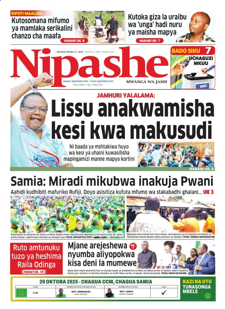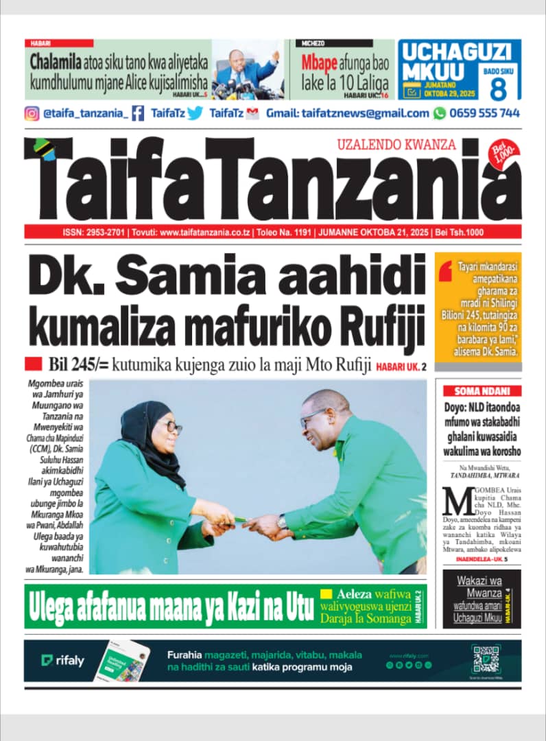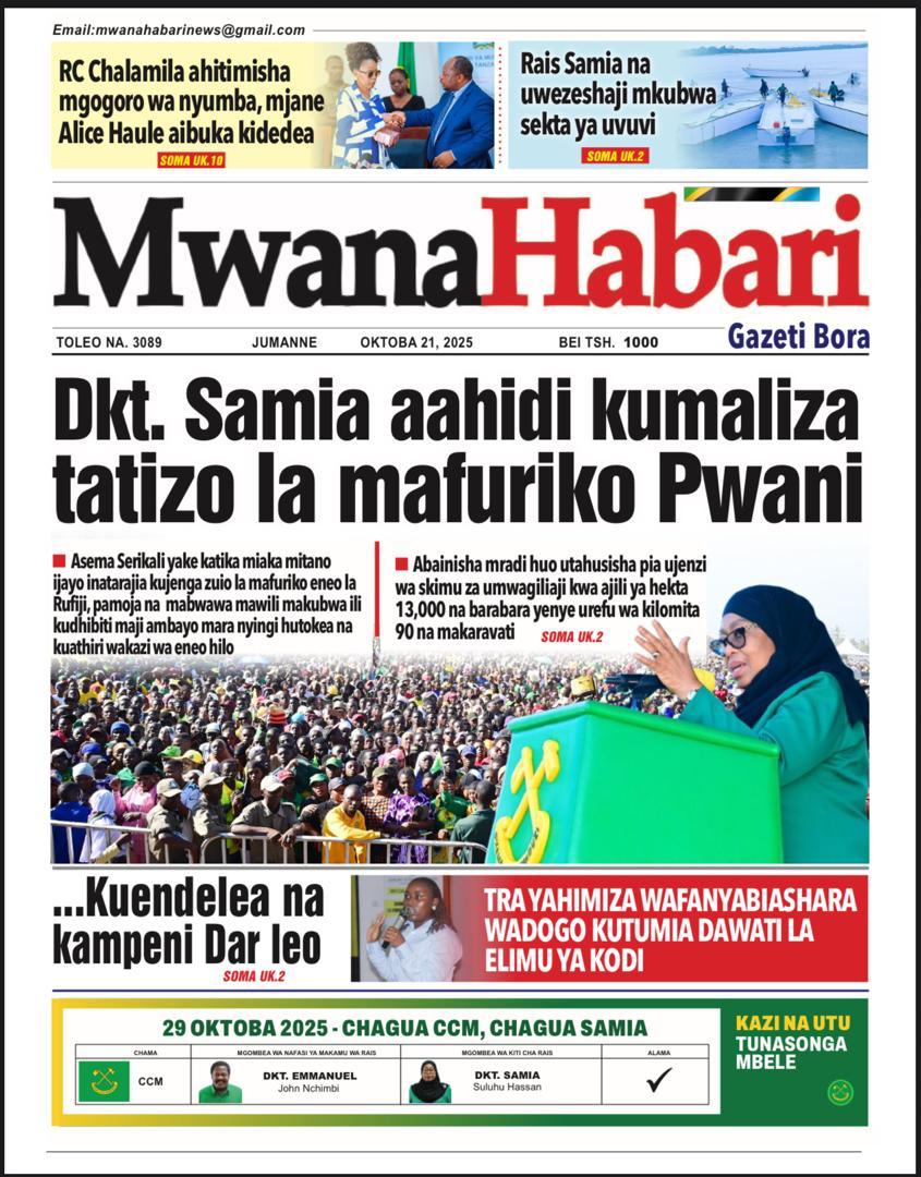 PATA HABARI MOTO MOTO KATIKA MAGAZETI YA LEO JUMANNE OKTOBA 21,2025