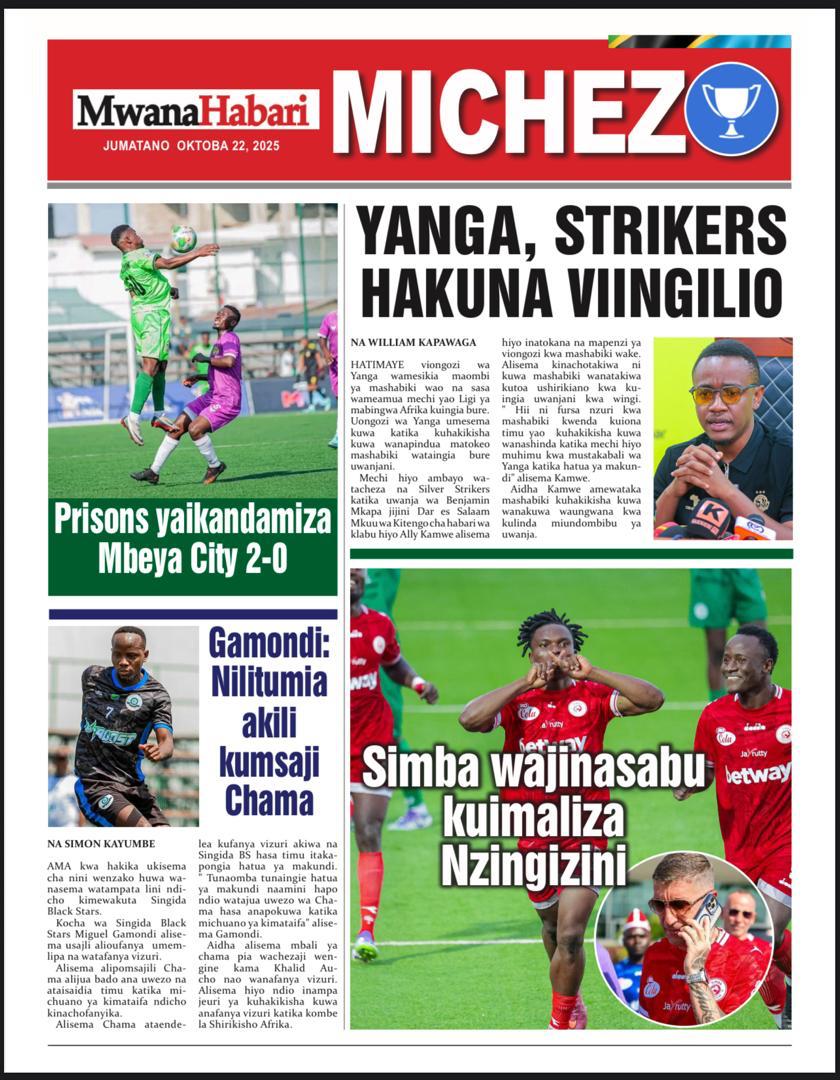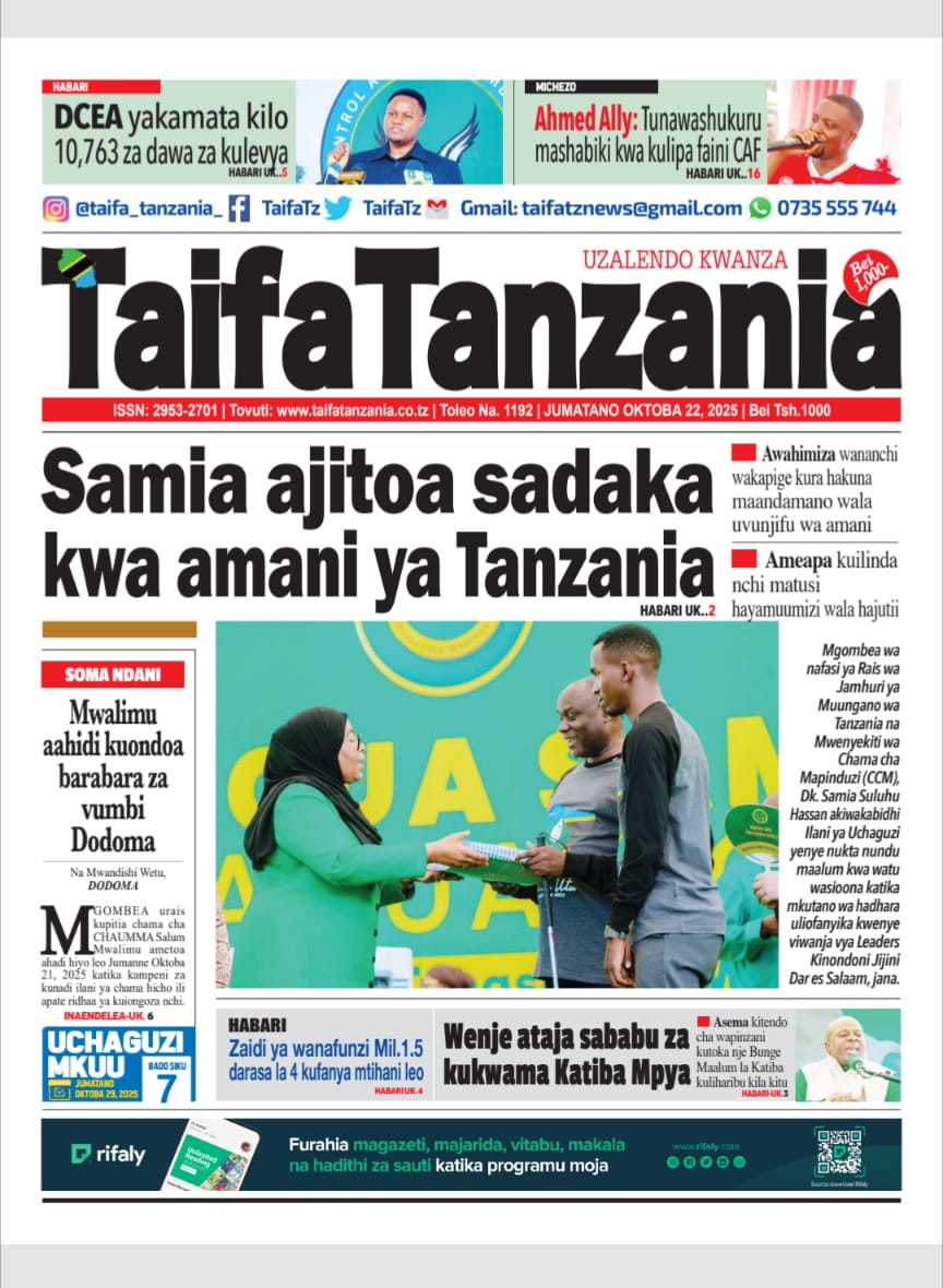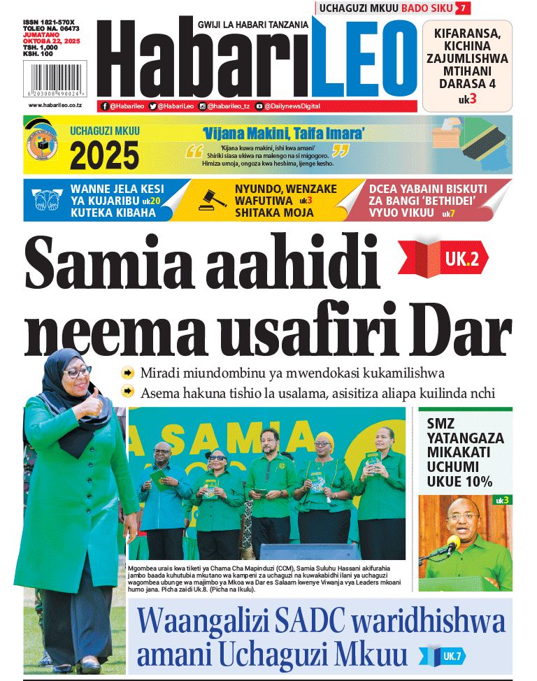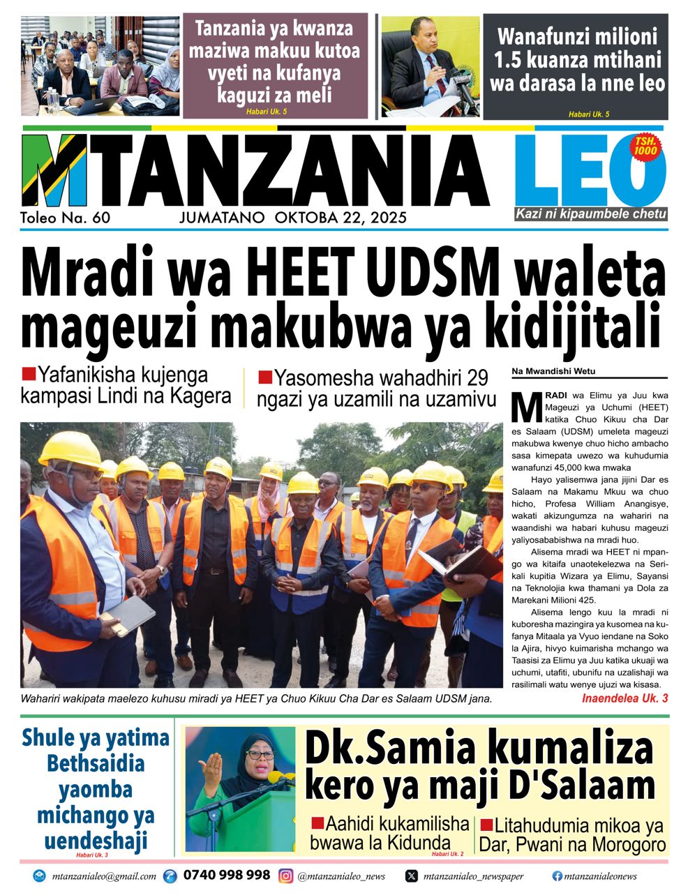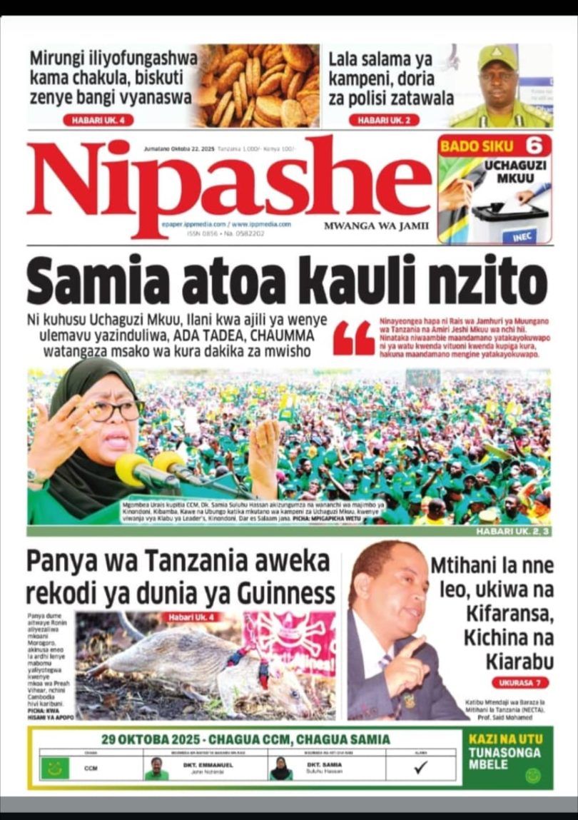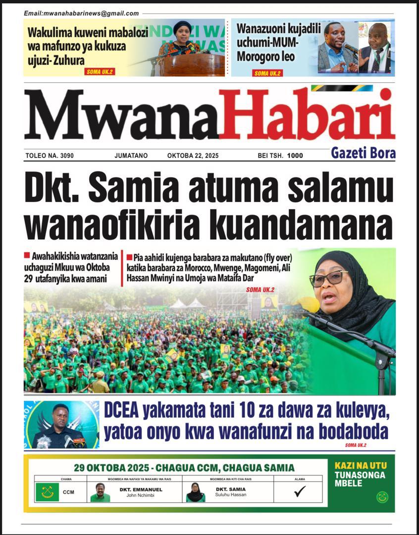 Featured • Magazeti PATA HABARI MOTO MOTO KATIKA MAGAZETI YA LEO JUMATANO OKTOBA 22,2025 54 minutes agoby Alex Sonna22 Views Written by Alex Sonna a FacebookXGoogle+PinterestLinkedIn