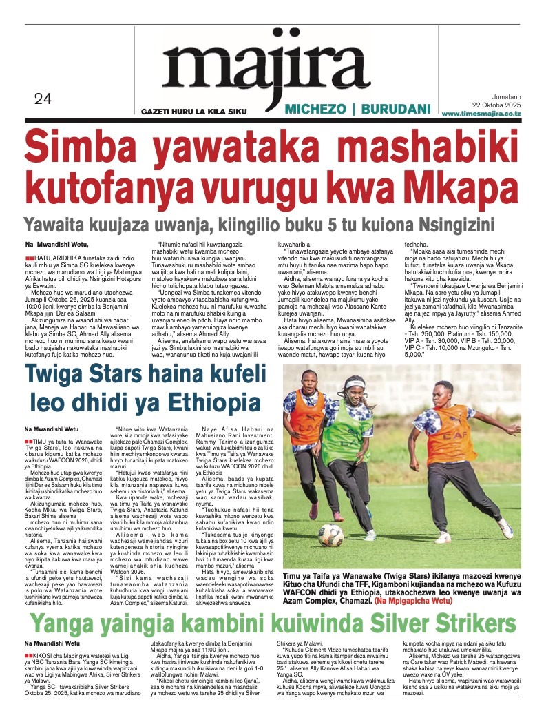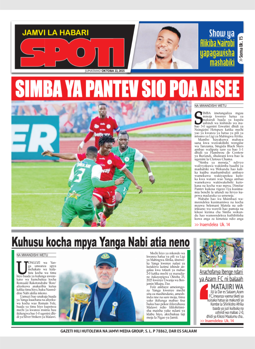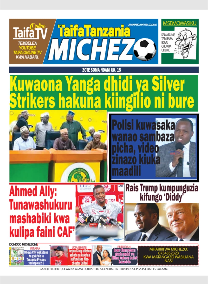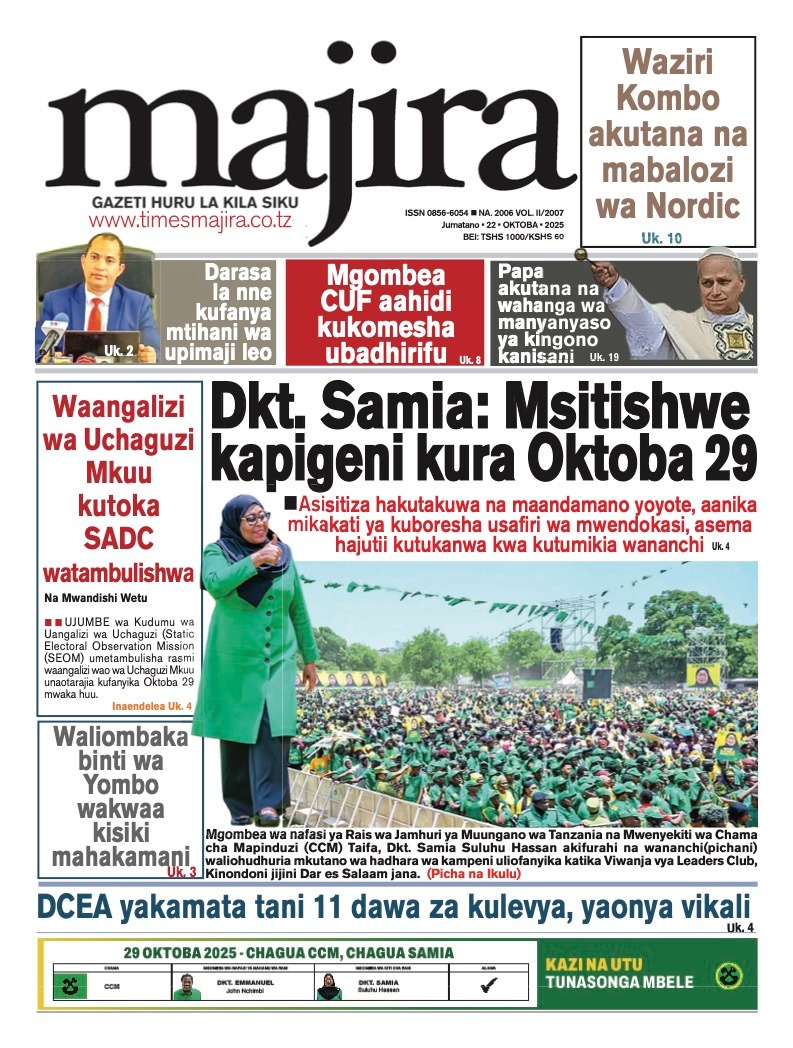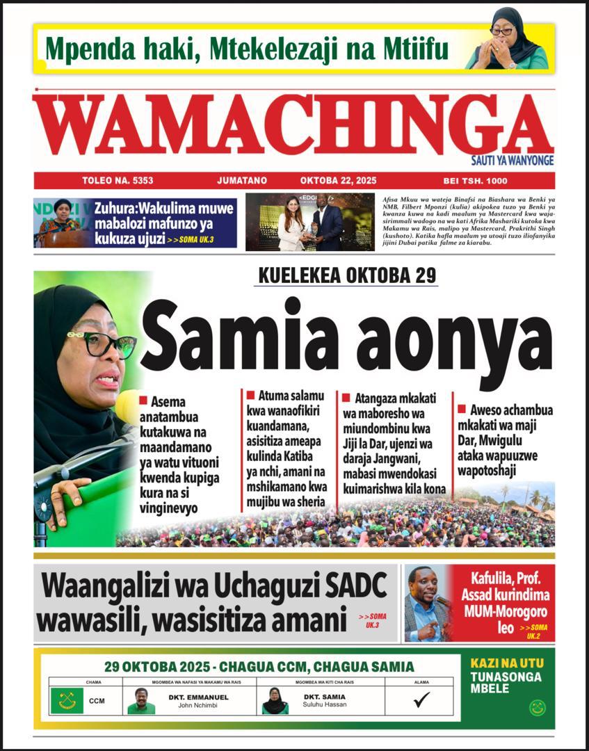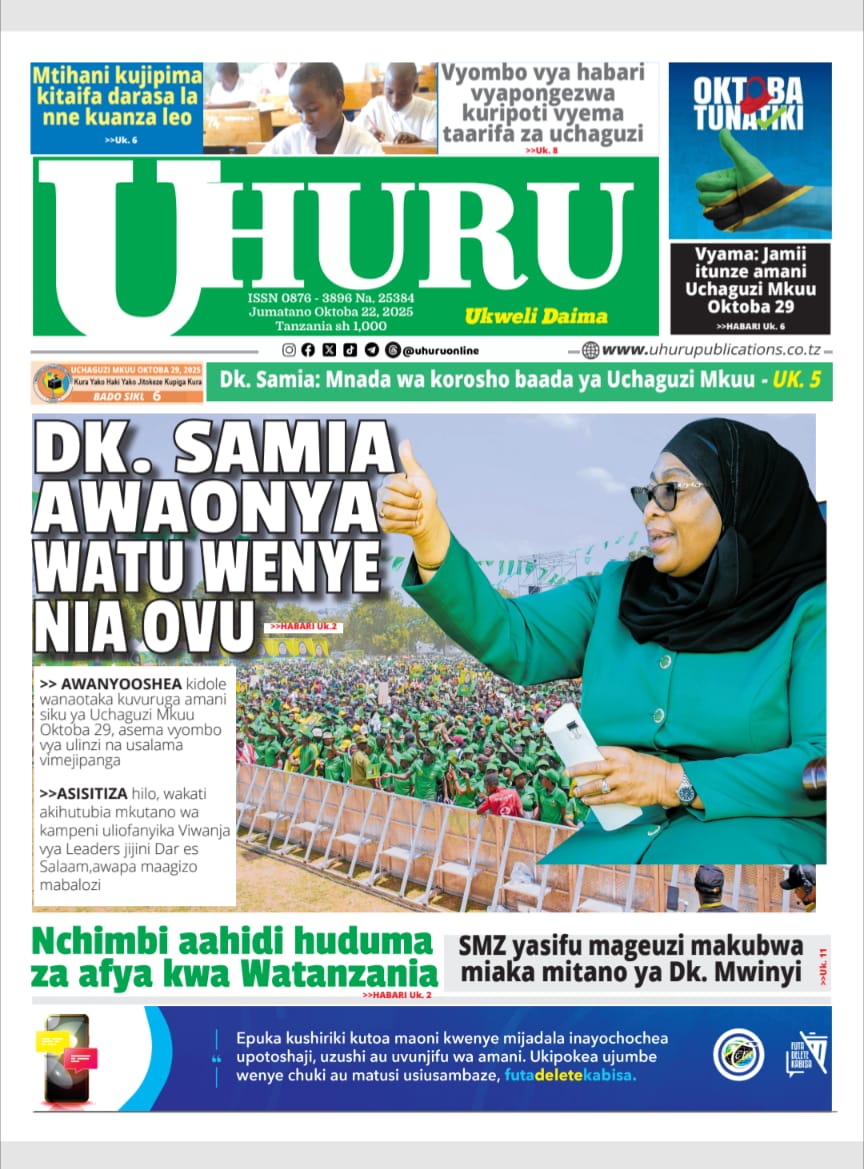 Featured • Magazeti PATA HABARI MOTO MOTO KATIKA MAGAZETI YA LEO JUMATANO OKTOBA 22,2025 54 minutes agoby Alex Sonna22 Views Written by Alex Sonna a FacebookXGoogle+PinterestLinkedIn