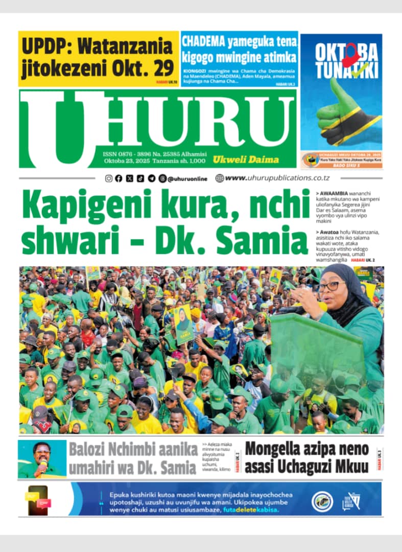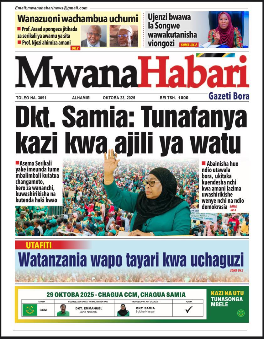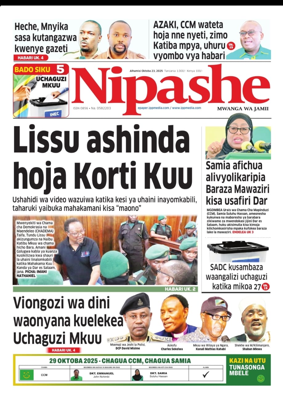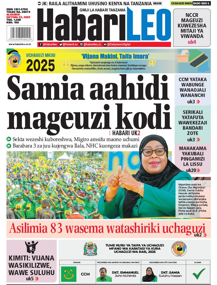 Featured • Magazeti PATA HABARI MOTO MOTO KATIKA MAGAZETI YA LEO OKTOBA 23,2025 41 seconds agoby Alex Sonna1 Views Written by Alex Sonna FacebookXGoogle+PinterestLinkedIn