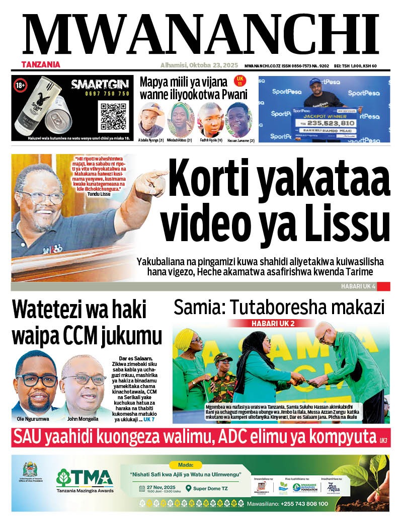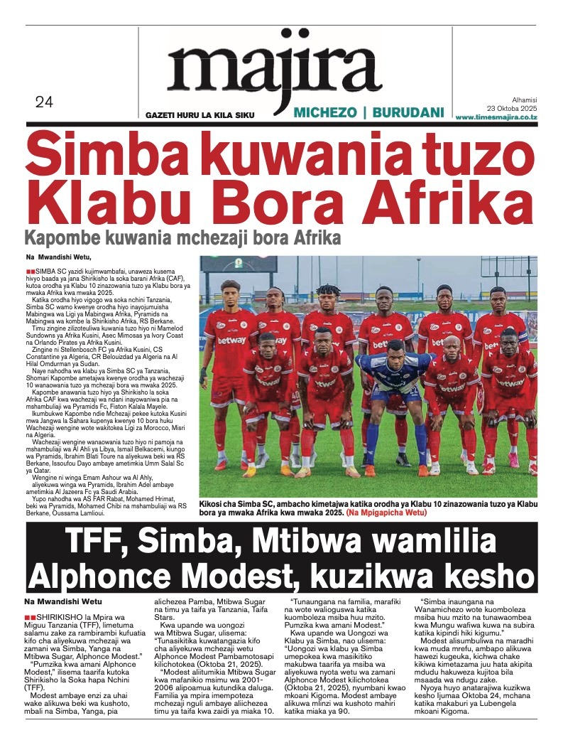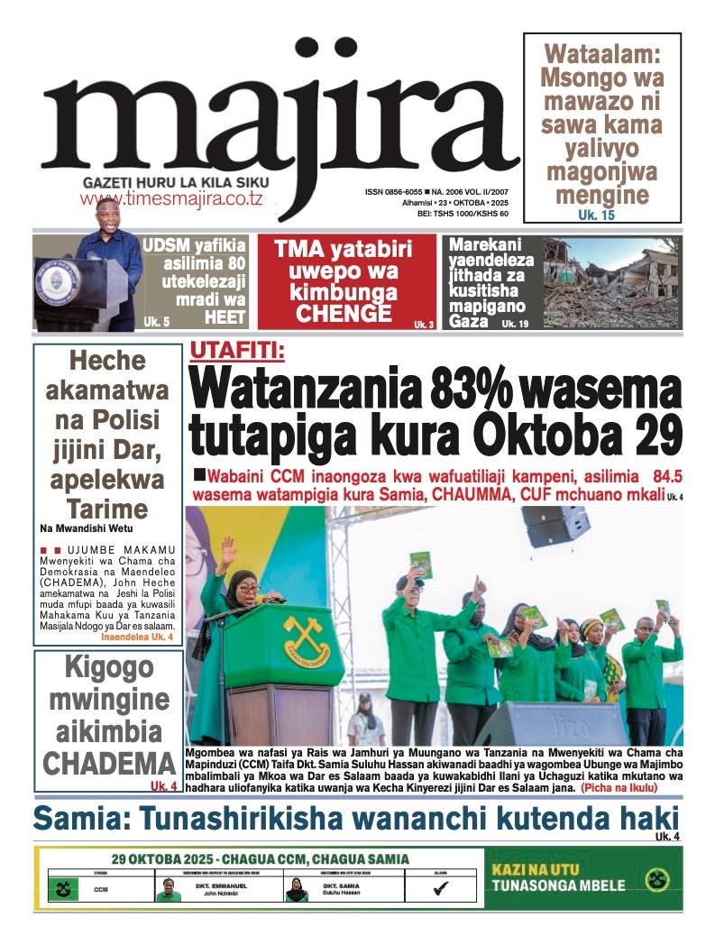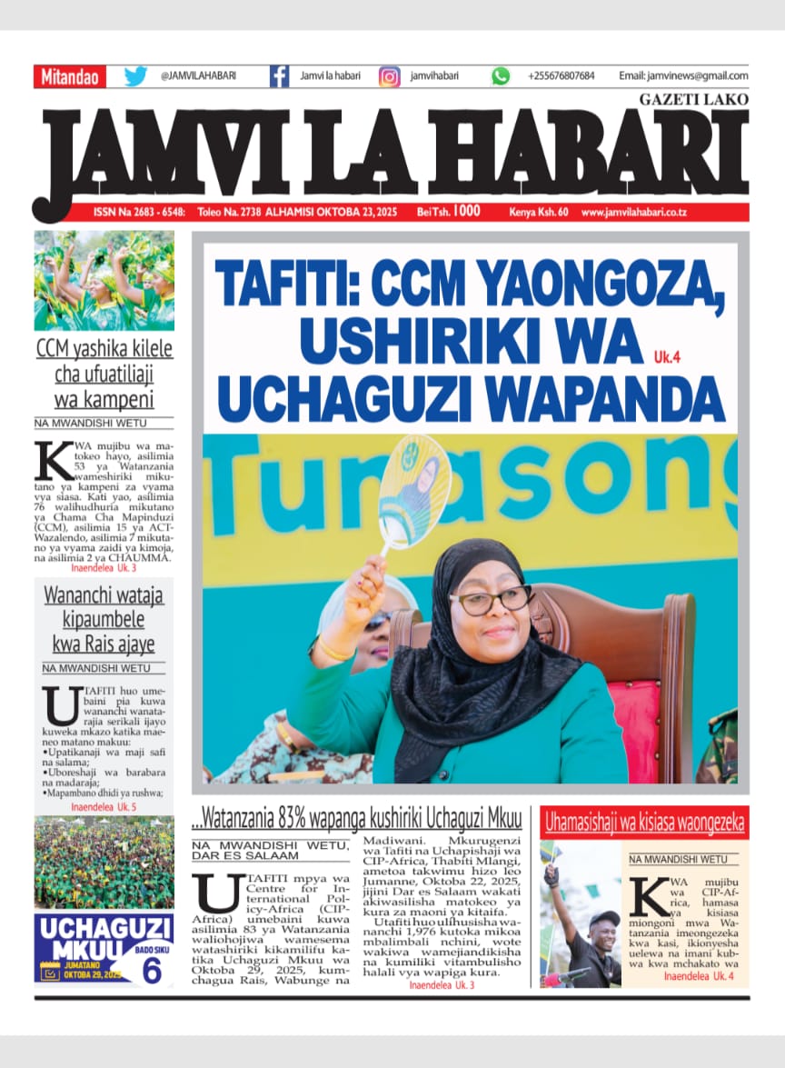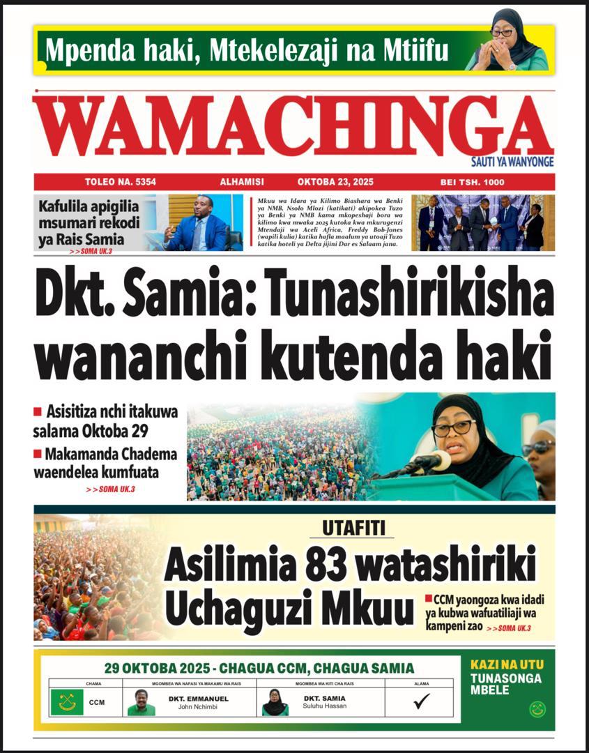 Featured • Magazeti PATA HABARI MOTO MOTO KATIKA MAGAZETI YA LEO OKTOBA 23,2025 41 seconds agoby Alex Sonna1 Views Written by Alex Sonna FacebookXGoogle+PinterestLinkedIn