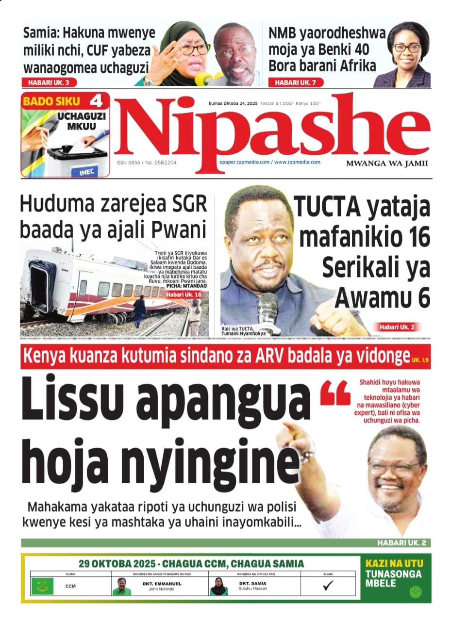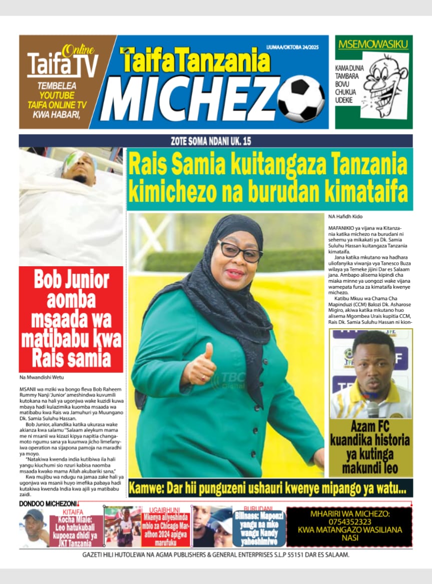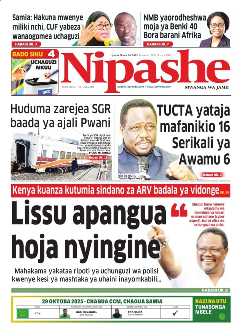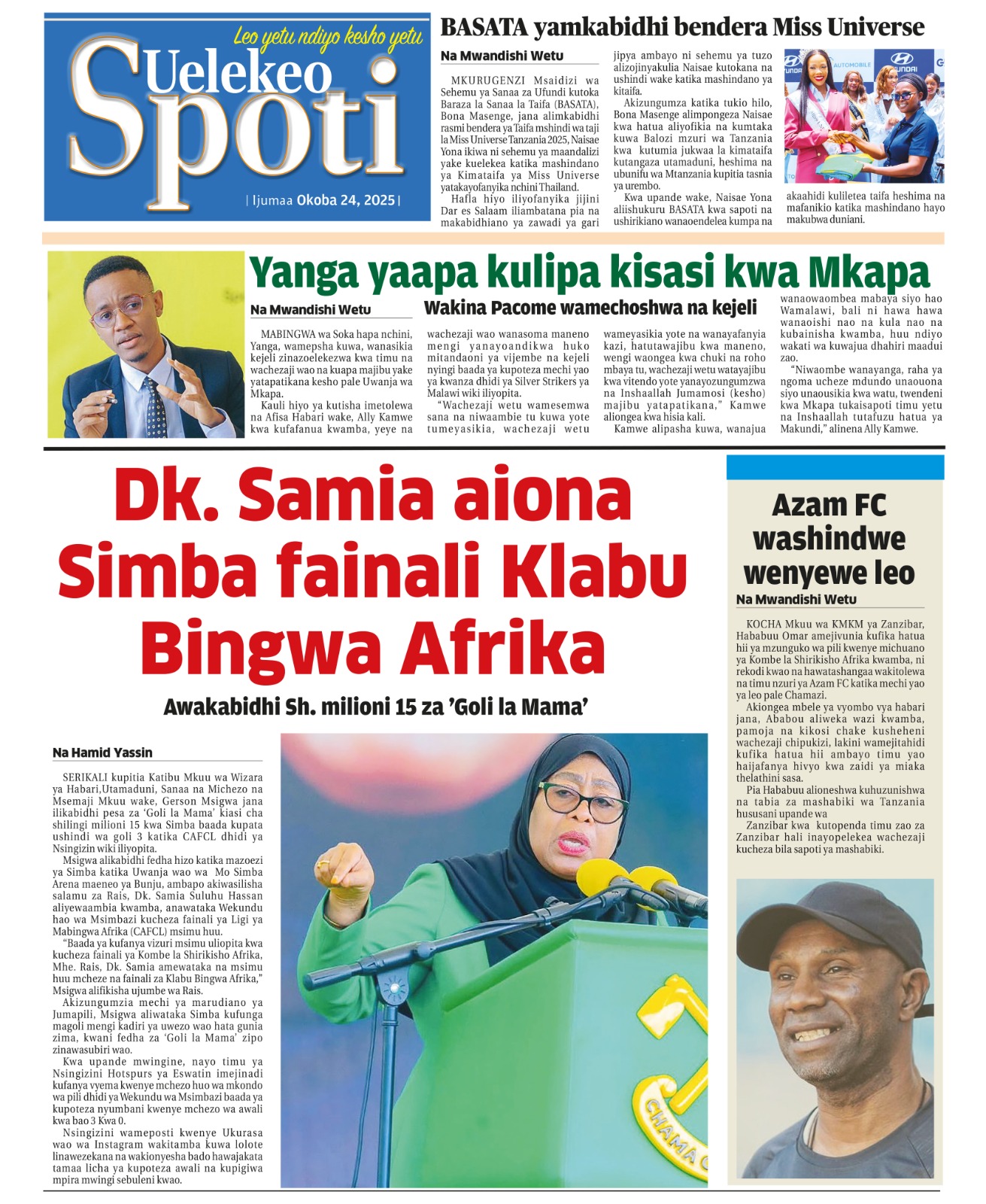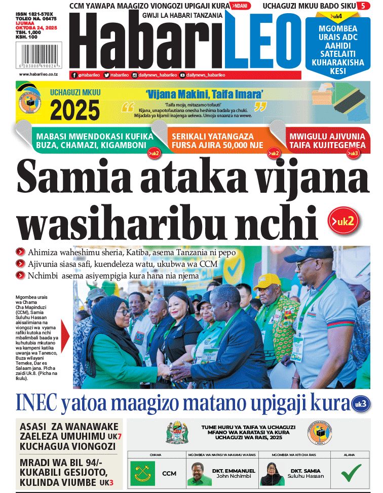 Featured • Magazeti PATA HABARI MOTO MOTO KATIKA MAGAZETI YA LEO IJUMAA OKTOBA 24,2025 3 hours agoby Alex Sonna41 Views Written by Alex Sonna a FacebookXGoogle+PinterestLinkedIn