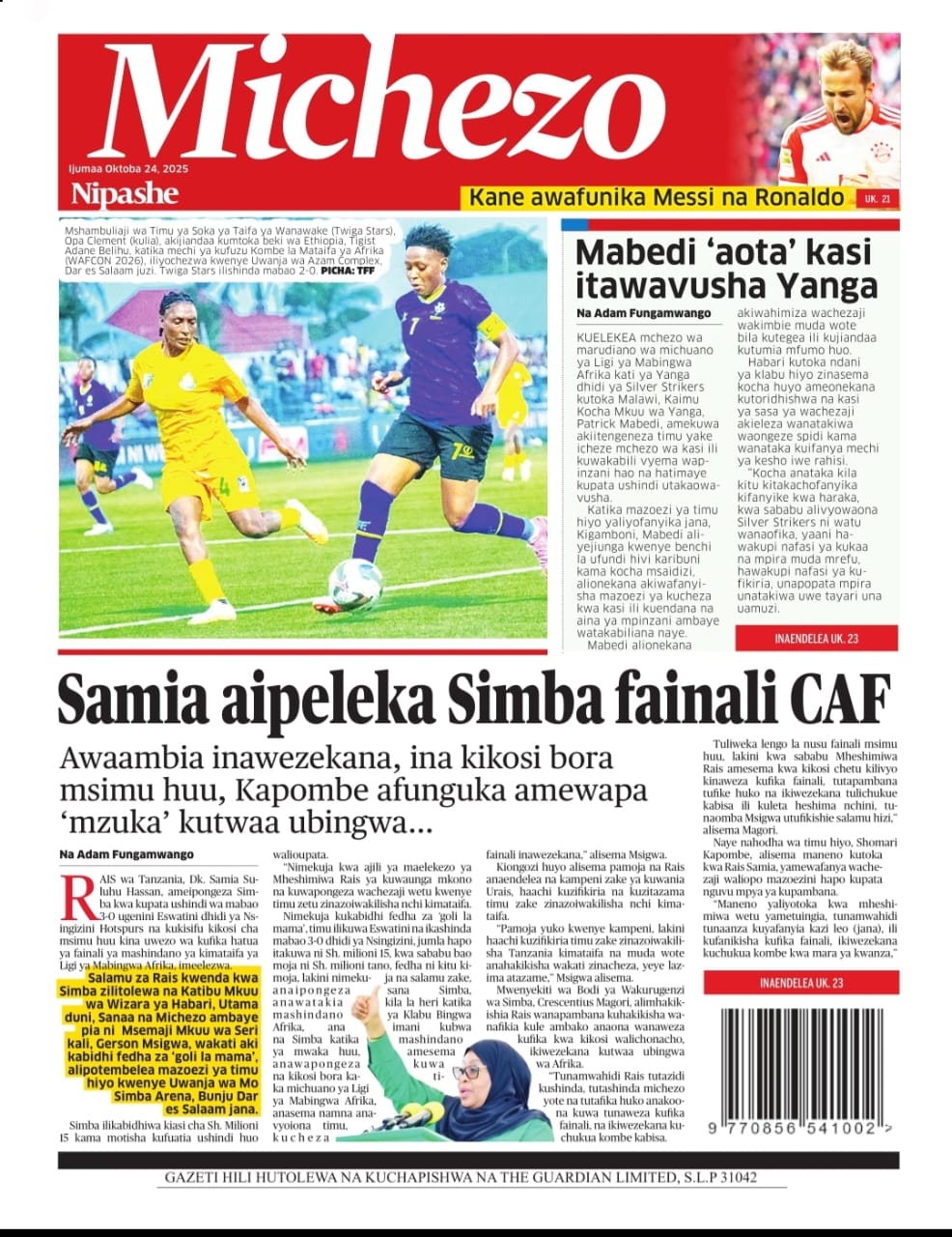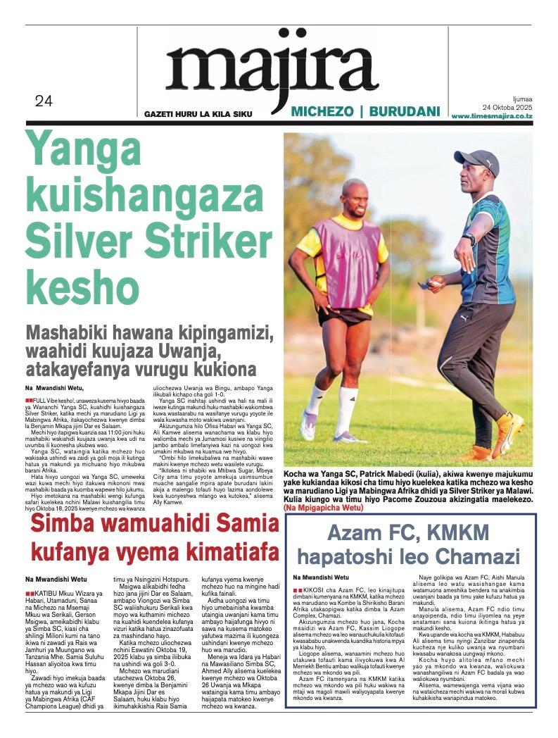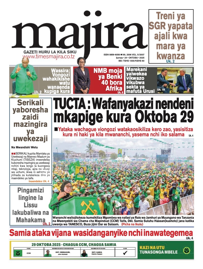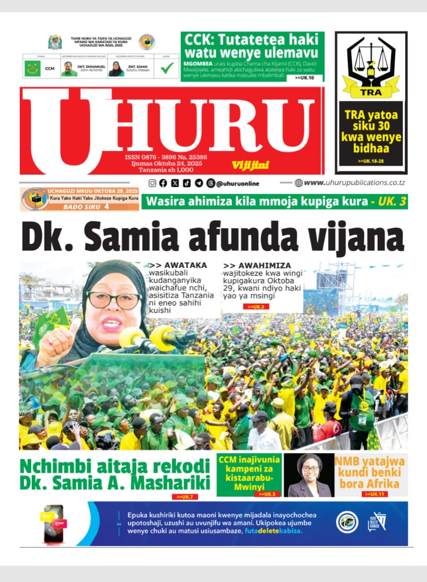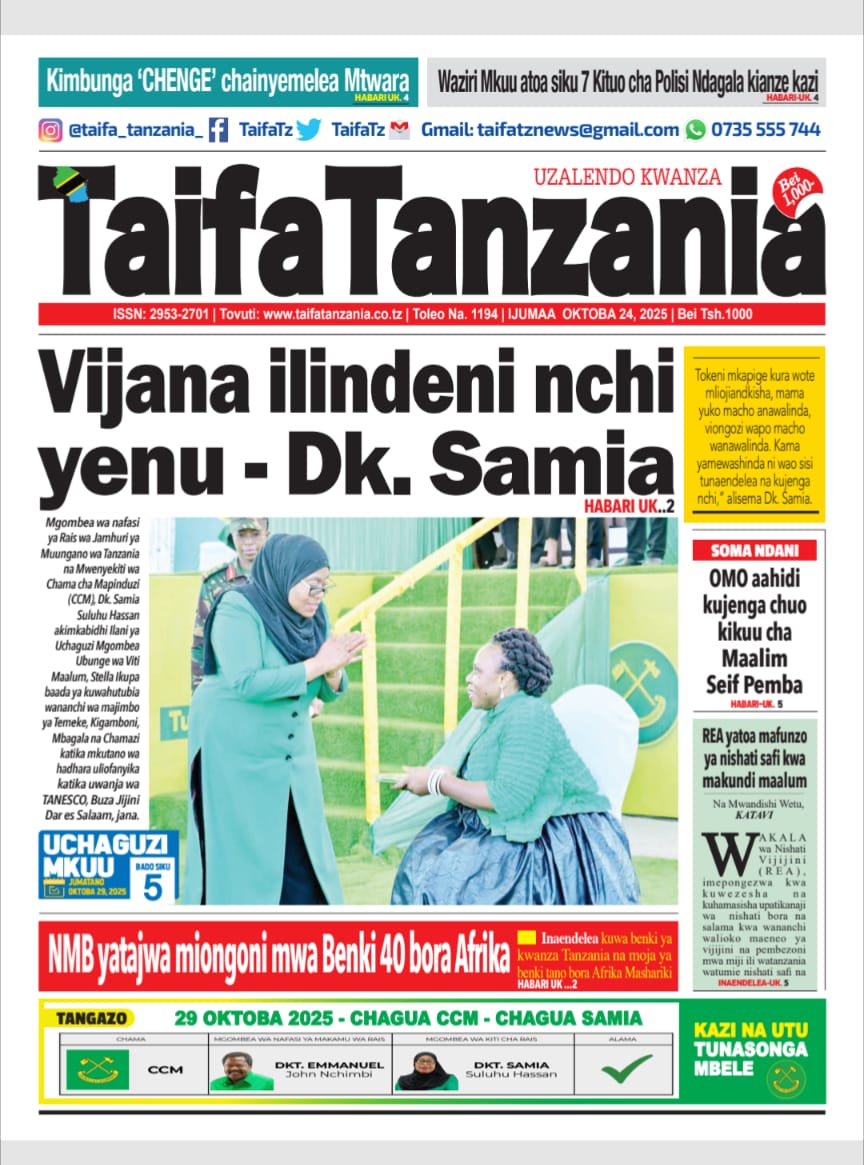 Featured • Magazeti PATA HABARI MOTO MOTO KATIKA MAGAZETI YA LEO IJUMAA OKTOBA 24,2025 3 hours agoby Alex Sonna41 Views Written by Alex Sonna a FacebookXGoogle+PinterestLinkedIn