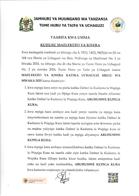 Featured • Kitaifa TUME YATOA MAELEKEZO YA KISERA KATIKA UCHAGUZI MKUU WA MWAKA 2025 3 hours agoby Alex Sonna6 Views Written by Alex Sonna FacebookXGoogle+PinterestLinkedIn
