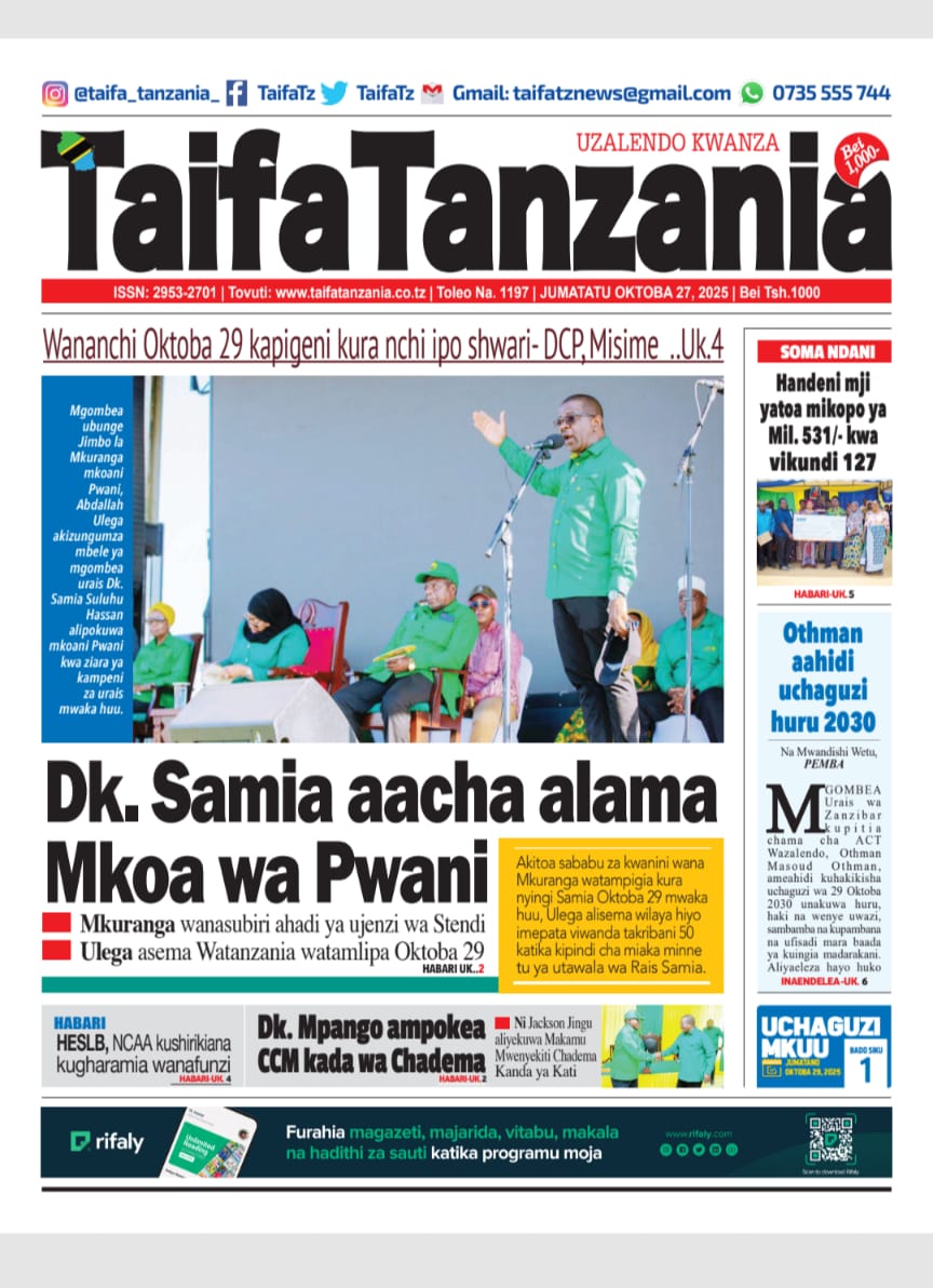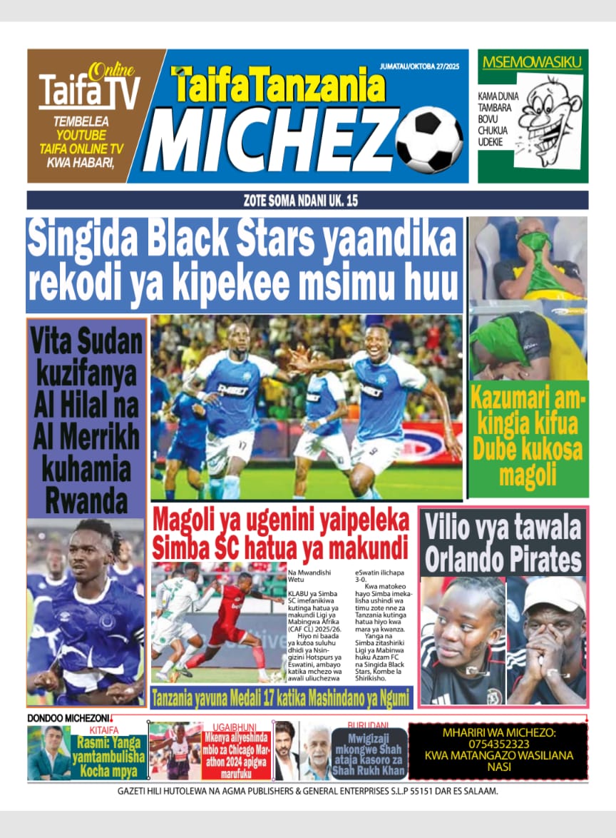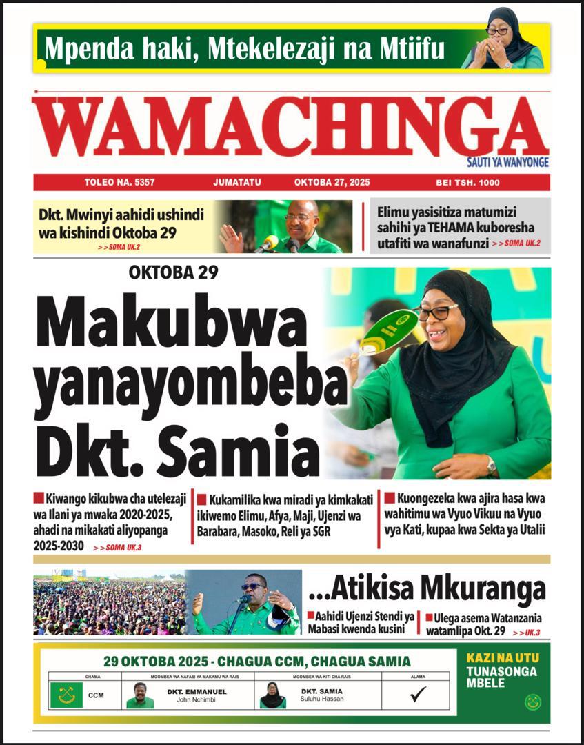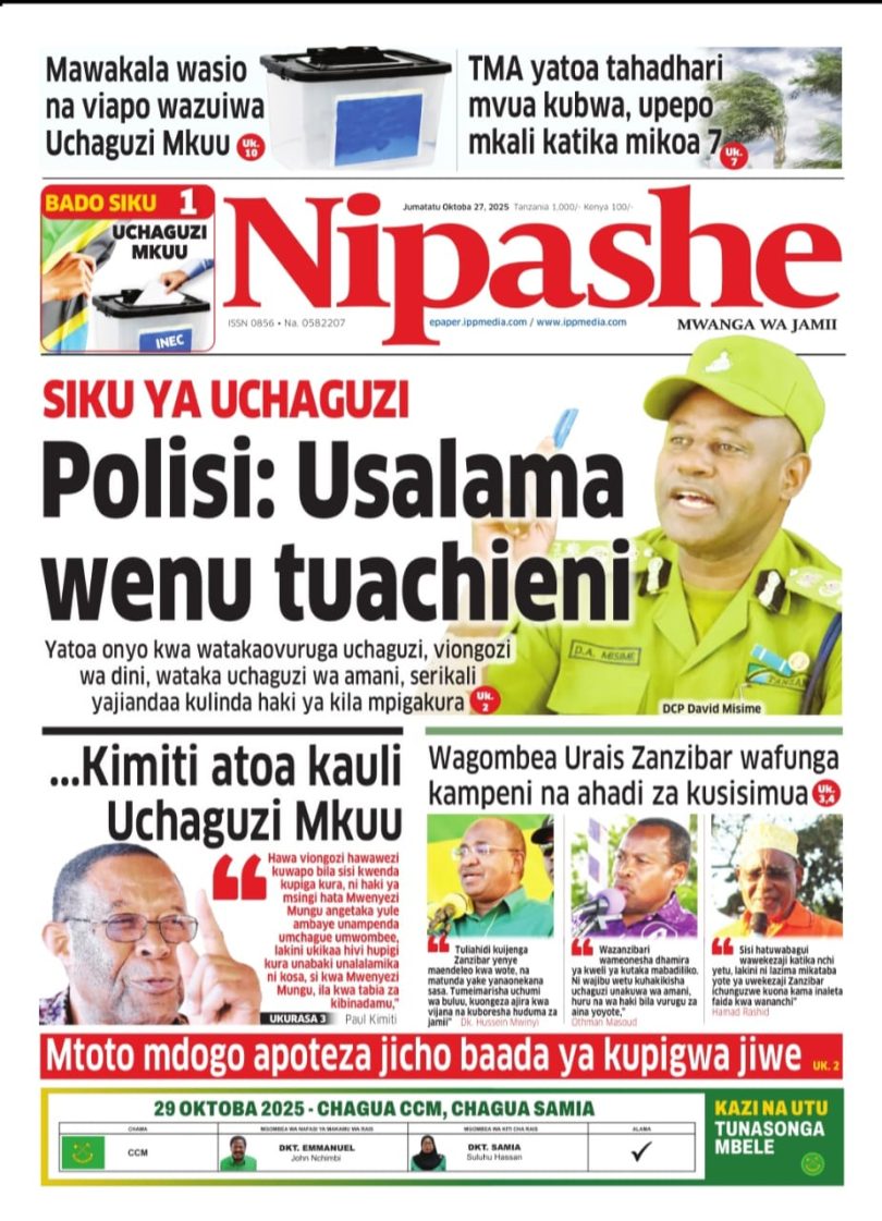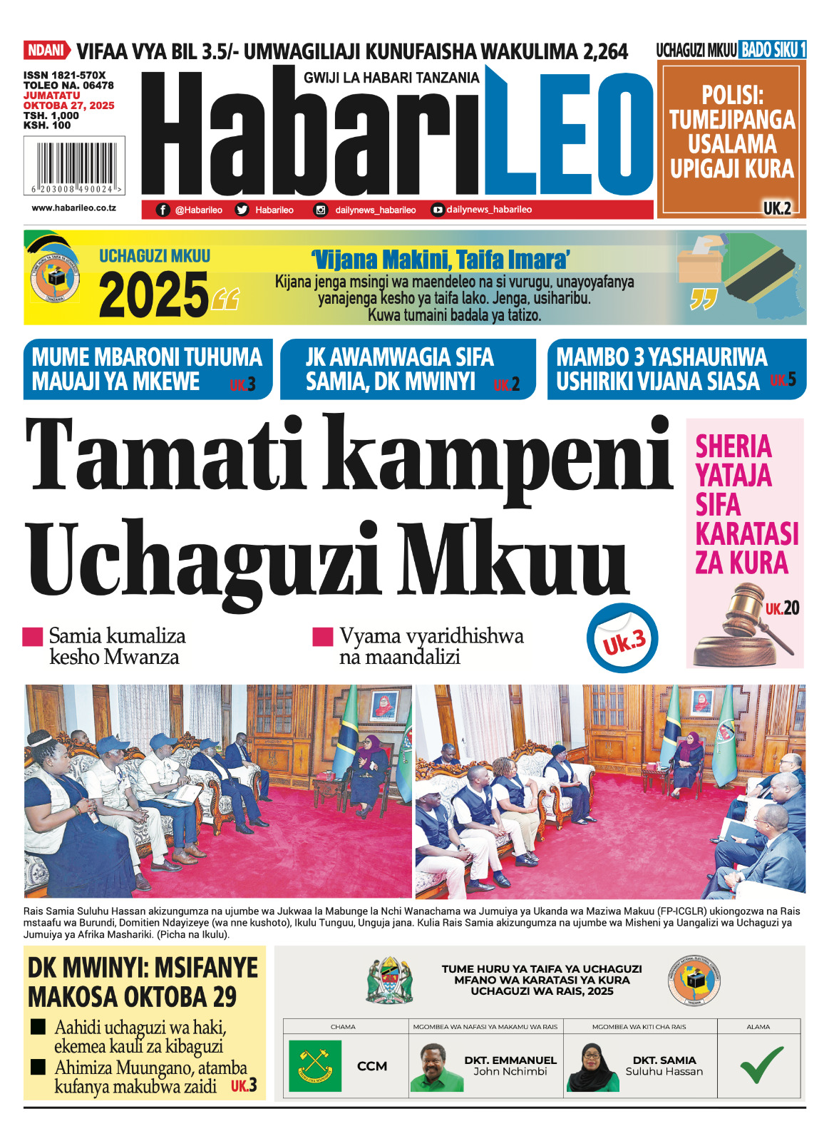 Featured • Magazeti PATA HABARI MOTO MOTO KATIKA MAGAZETI YA LEO JUMATATU OKTOBA 27,2025 2 hours agoby Alex Sonna49 Views Written by Alex Sonna a FacebookXGoogle+PinterestLinkedIn