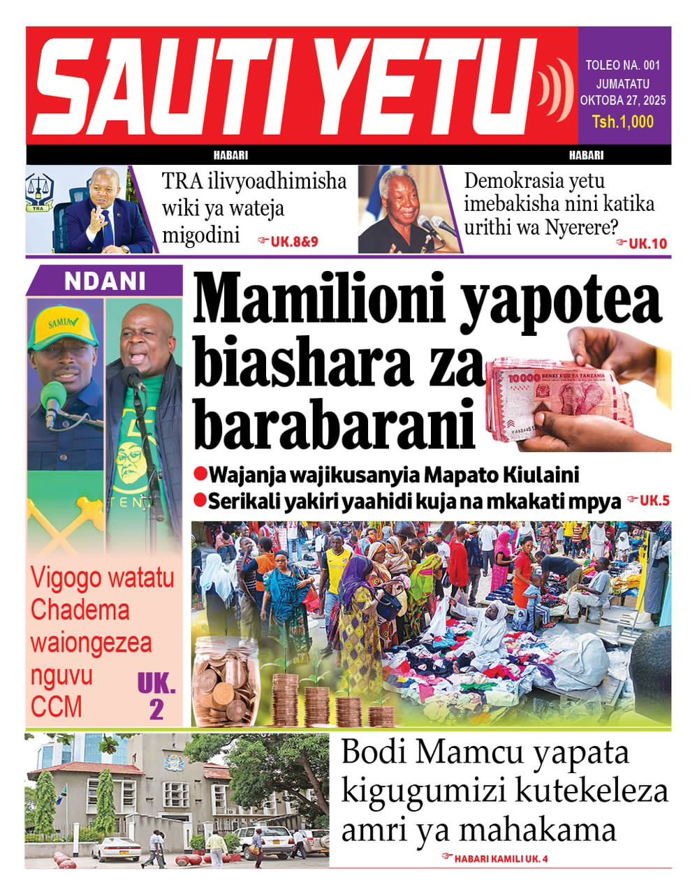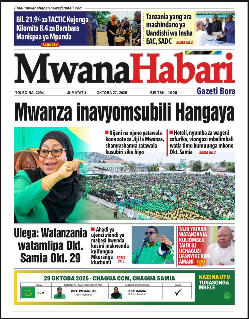 Featured • Magazeti PATA HABARI MOTO MOTO KATIKA MAGAZETI YA LEO JUMATATU OKTOBA 27,2025 3 weeks agoby Alex Sonna600 Views Written by Alex Sonna FacebookXGoogle+PinterestLinkedIn