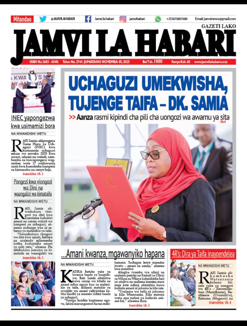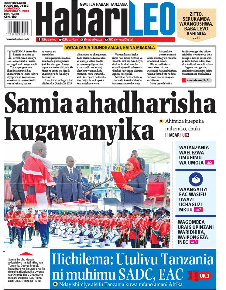 Featured • Magazeti PATA HABARI MOTO MOTO KATIKA MAGAZETI YA LEO JUMATANO NOVEMBA 5,2025 39 minutes agoby Alex Sonna17 Views Written by Alex Sonna FacebookXGoogle+PinterestLinkedIn