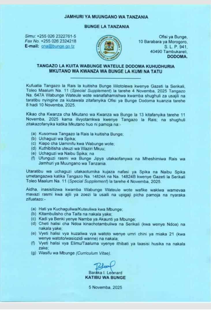 Featured • Kitaifa WABUNGE WATEULE WAITWA BUNGENI JIJINI DODOMA 2 hours agoby Alex Sonna26 Views Written by Alex Sonna FacebookXGoogle+PinterestLinkedIn
