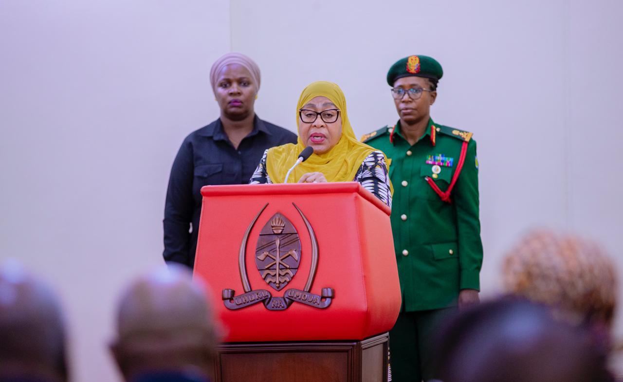 Rais wa Jamhuri ya Muungano wa Tanzania Mheshimiwa Dkt. Samia Suluhu Hassan akizungumza na viongozi mbalimbali Ikulu Chamwino Mkoani Dodoma tarehe 20 Novemba, 2025 kabla ya kuzindua Tume Huru ya Uchunguzi wa Matukio ya Uvunjifu wa Amani yaliyotokea wakati na baada ya Uchaguzi Mkuu uliofanyika tarehe 29 Oktoba, 2025.