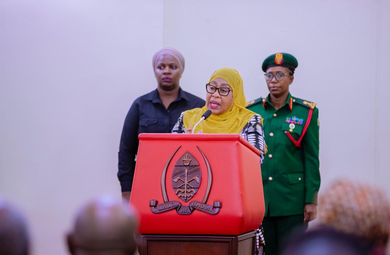 Rais wa Jamhuri ya Muungano wa Tanzania Mheshimiwa Dkt. Samia Suluhu Hassan akizungumza na viongozi mbalimbali Ikulu Chamwino Mkoani Dodoma tarehe 20 Novemba, 2025 kabla ya kuzindua Tume Huru ya Uchunguzi wa Matukio ya Uvunjifu wa Amani yaliyotokea wakati na baada ya Uchaguzi Mkuu uliofanyika tarehe 29 Oktoba, 2025.