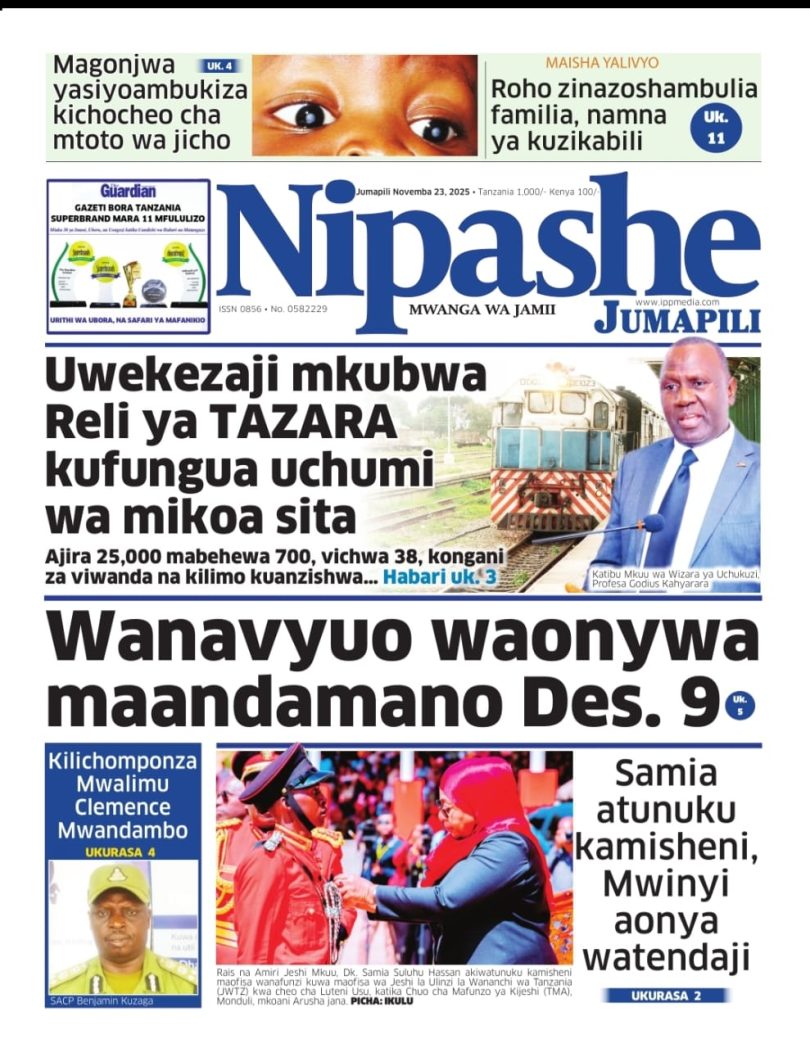 Featured • Magazeti PATA HABARI MOTO MOTO KATIKA MAGAZETI YA LEO JUMAPILI NOVEMBA 23,2025 47 seconds agoby Alex Sonna1 Views Written by Alex Sonna FacebookXGoogle+PinterestLinkedIn