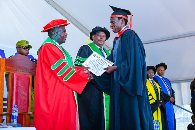 Naibu Waziri wa Fedha, Mhe. Mhandisi Mshamu Ali Munde (Mb), akimkabidhi cheti mwanafunzi aliyefanya vizuri zaidikatika masomo Bw. Mushobos Benjamin Nelson, katika Mahafali ya 39 ya Chuo cha Mipango ya Maendeleo Vijijini, Duru ya Pili, yaliyofanyika Kitumba – Kisesa, Katika Kituo cha Mafunzo cha Kanda ya Ziwa, jijini Mwanza. Katikati ni Mkuu wa Chuo Cha Mipango ya Maendeleo Vijijini (IRDP), Profesa. Hozen Mayaya.