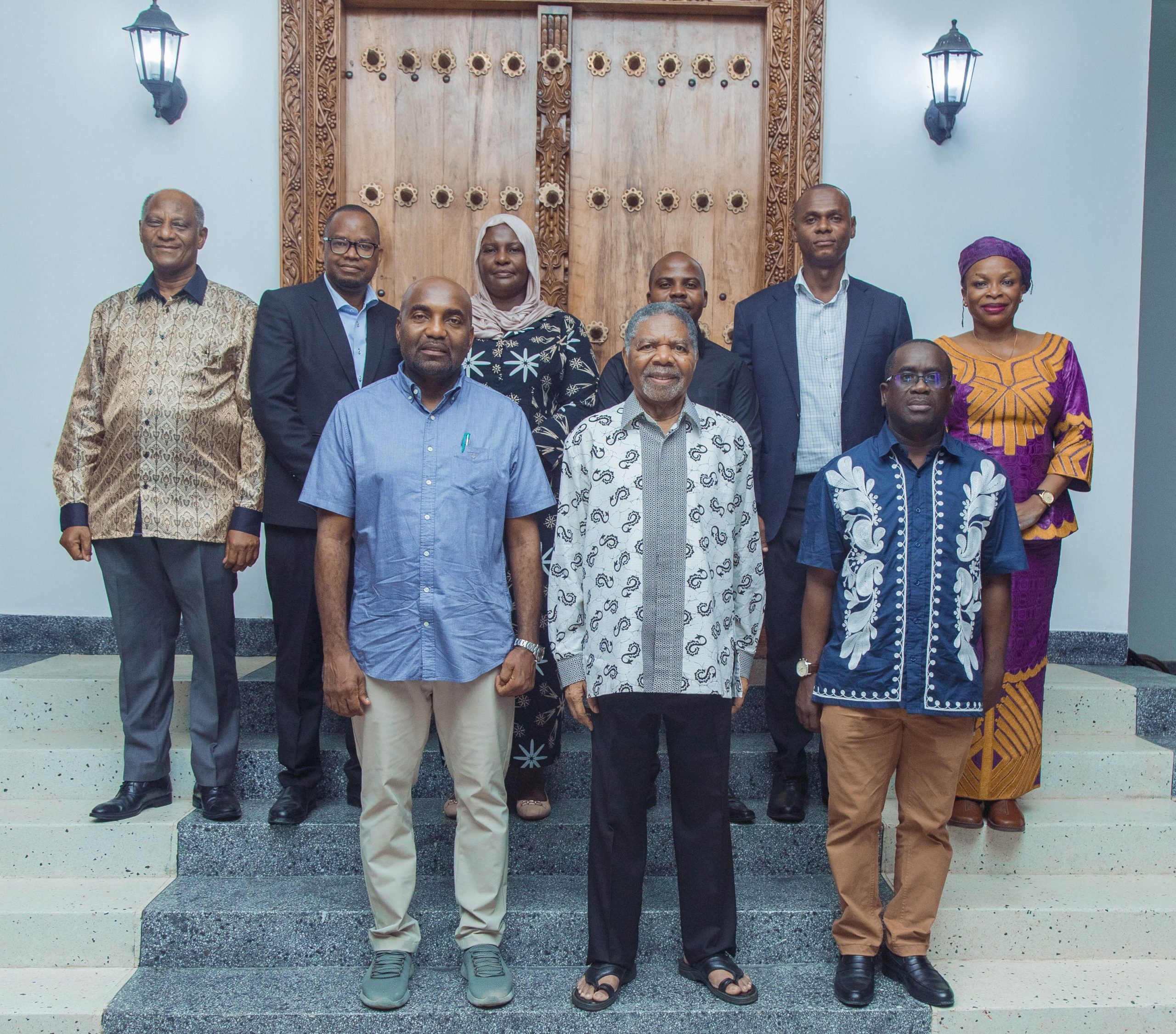Rais Mstaafu wa Zanzibar wa Awamu ya Saba Dk. Ali Mohamed Shein (katikati) akiwa katika picha ya pamoja mara baada ya mazungumzo na Waziri wa Nchi Ofisi ya Makamu wa Rais Mhe. Mhandisi Hamad Yussuf Masauni (kushoto) alipomtembelea nyumbani kwake Zanzibar, Disemba 10,2025 ambaye aliambatana na viongozi mbalimbali kutoka Ofisi ya Makamu wa Rais.