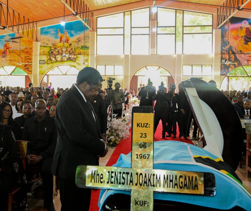 Makamu wa Rais wa Jamhuri ya Muungano wa Tanzania Mhe.Balozi Dkt. Emmanuel Nchimbi ameshiriki katika Ibada ya kuaga mwili wa aliyekuwa Mbunge wa Jimbo la Peramiho, Marehemu Jenista Joakim Mhagama, iliyofanyika katika Kanisa Katoliki, Parokia ya Mwenyeheri Maria Theresa Ledochowska, Kiwanja cha Ndege mkoani Dodoma. Tarehe 13 Desemba 2025.