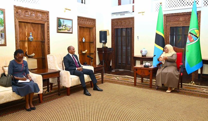 Rais wa Jamhuri ya Muungano wa Tanzania, Mhe. Dkt. Samia Suluhu Hassan, akiwa katika picha ya pamoja na Balozi wa Kenya anayemaliza muda wake nchini, Mhe. Isaac Njenga, Ikulu Dar es Salaam, tarehe 17 Desemba, 2025.