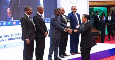Naibu Waziri wa Fedha, Mhe. Laurent Deogratius Luswetula (Mb), akimpatia zawadi mmoja wapo wa wanafunzi waliofanya vizuri katika Mahafali ya 23 ya Taasisi ya Uhasibu Tanzania (TIA) yaliyofanyika Katika Viwanja vya TIA, Kurasini Jijini Dar es Salaam.