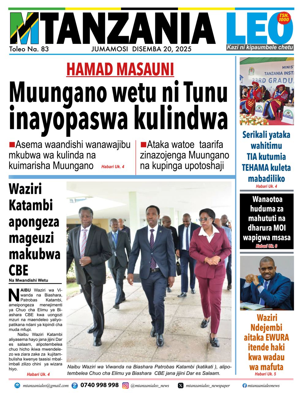 Featured • Magazeti PATA HABARI MOTO MOTO KATIKA MAGAZETI YA LEO JUMAMOSI DISEMBA 20,2025 2 hours agoby Alex Sonna63 Views Written by Alex Sonna FacebookXGoogle+PinterestLinkedIn