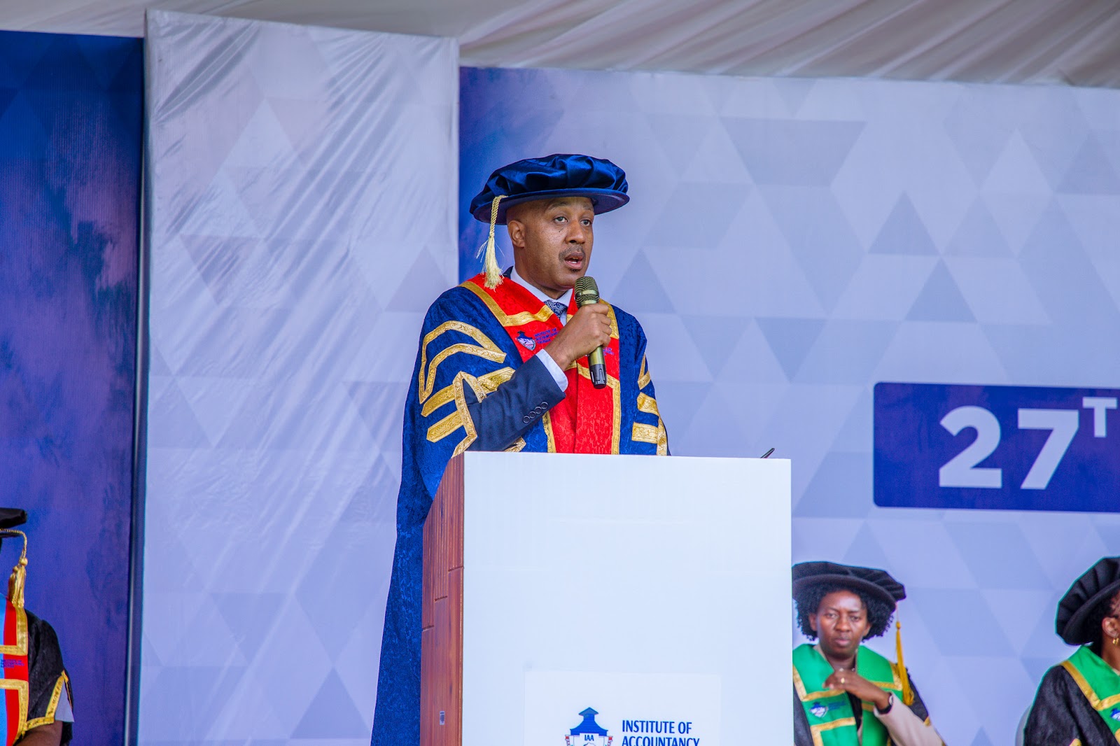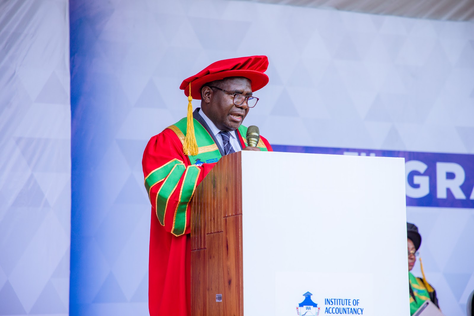 Mkuu wa Chuo cha Uhasibu Arusha (IAA), Prof. Eliamani Sedoyeka, akizungumza wakati wa Mahafali ya 27 ya Chuo cha Uhasibu Arusha (IAA), yaliyofanyika uwanja wa Chuo hicho, jijini Arusha.